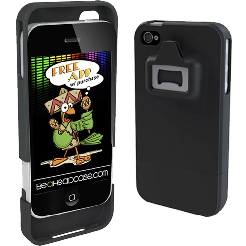 Be a Headcase™ Bottle and Can Opener Case, opens bottles and cans! For sleek, durable protection of your iPhone 4, the ultra-slim Be A Headcase Bottle / Can Opener for iPhone 4 with built in stainless steel bottle opener and can tab is made of hard shell plastic and features a minimal wall thickness.