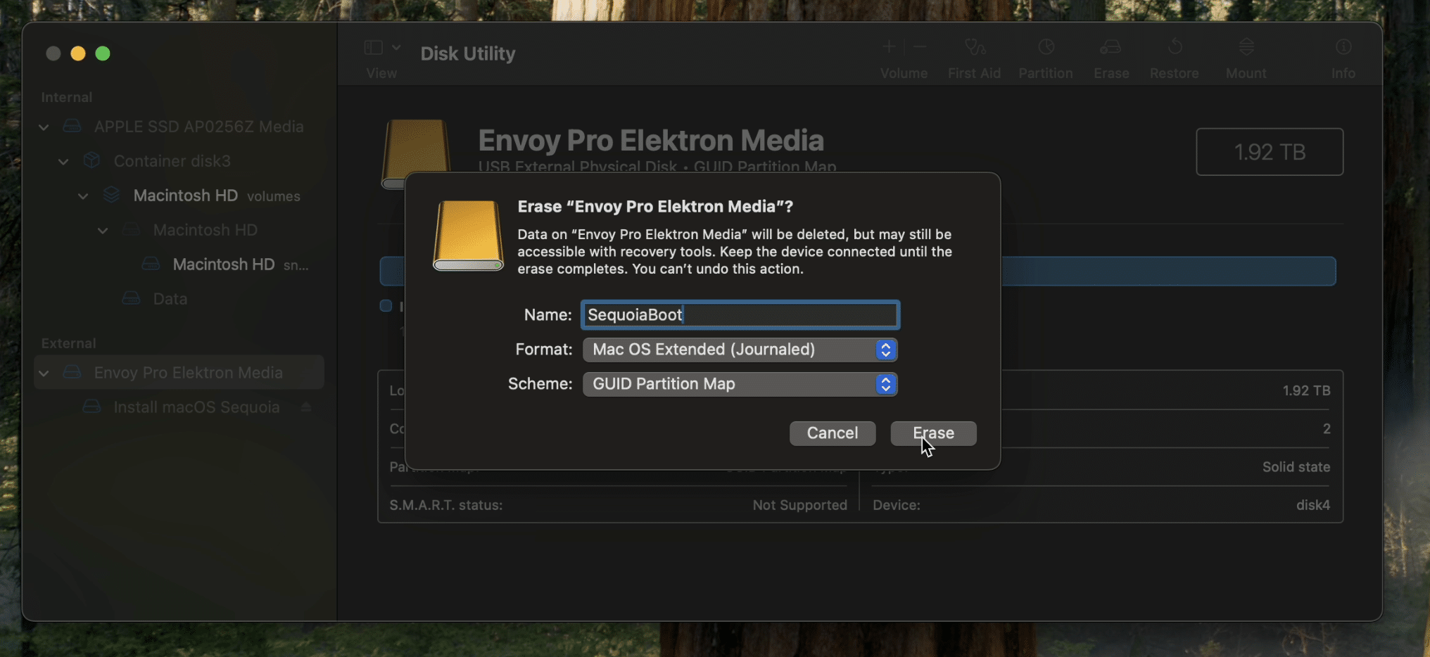 You’ll need to erase and format your OWC Envoy Pro Elektron or Envoy Pro mini specifically for the macOS installer.