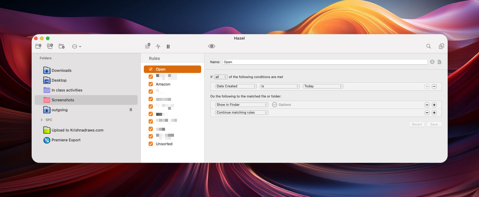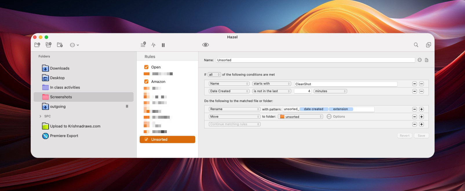 If my Hazel rules do not match with any of the vendor rules I have already set up, then Hazel will rename the file to Unsorted and places it in a sub-folder called Unsorted inside my Screenshots folder.