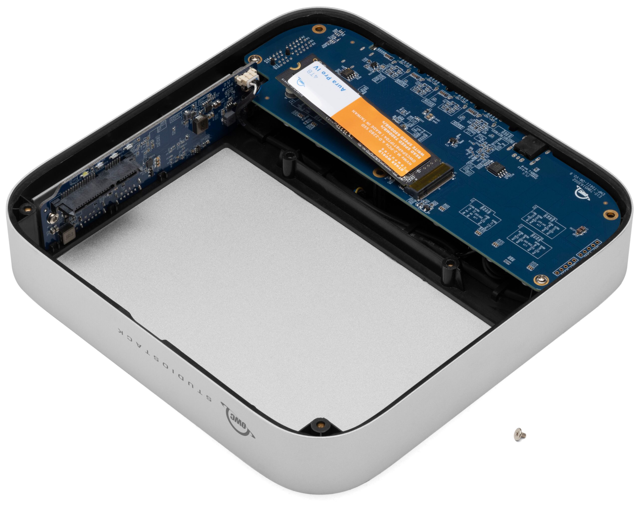 Of course, StudioStack is way more than just extra ports. Inside is support for massive amounts of both M.2 SSD and SATA HDD storage.