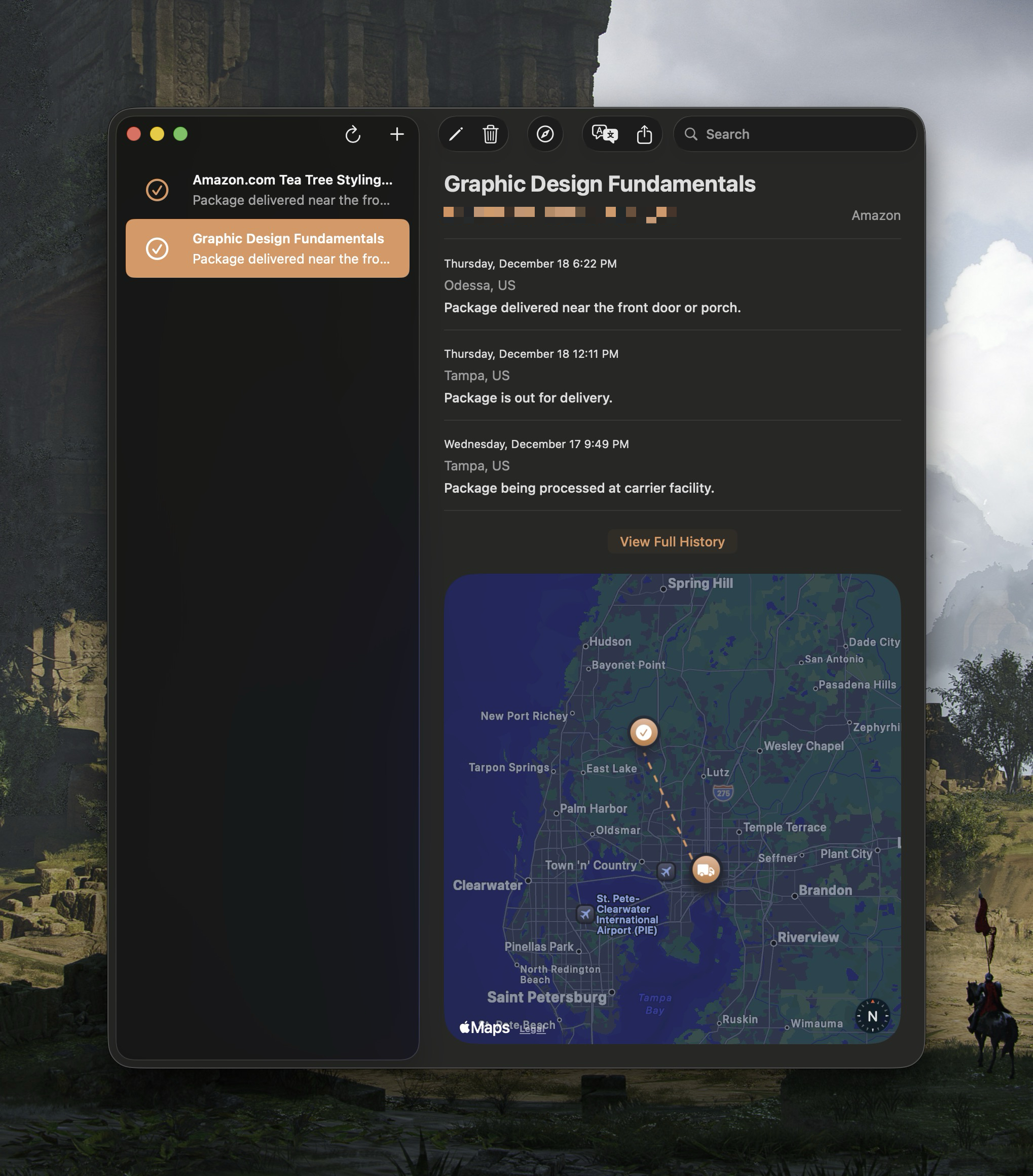 Parcel provides a clean and intuitive interface, just as one should expect from a top quality Mac app. On the left sidebar are individual shipments you’re currently tracking. Click on any item in your shipment list, and Parcel will show you the shipment details. These details include any delivery stops, an estimated delivery time, and even a built-in Apple map so you can visually “see” your package at each stop along its travels.