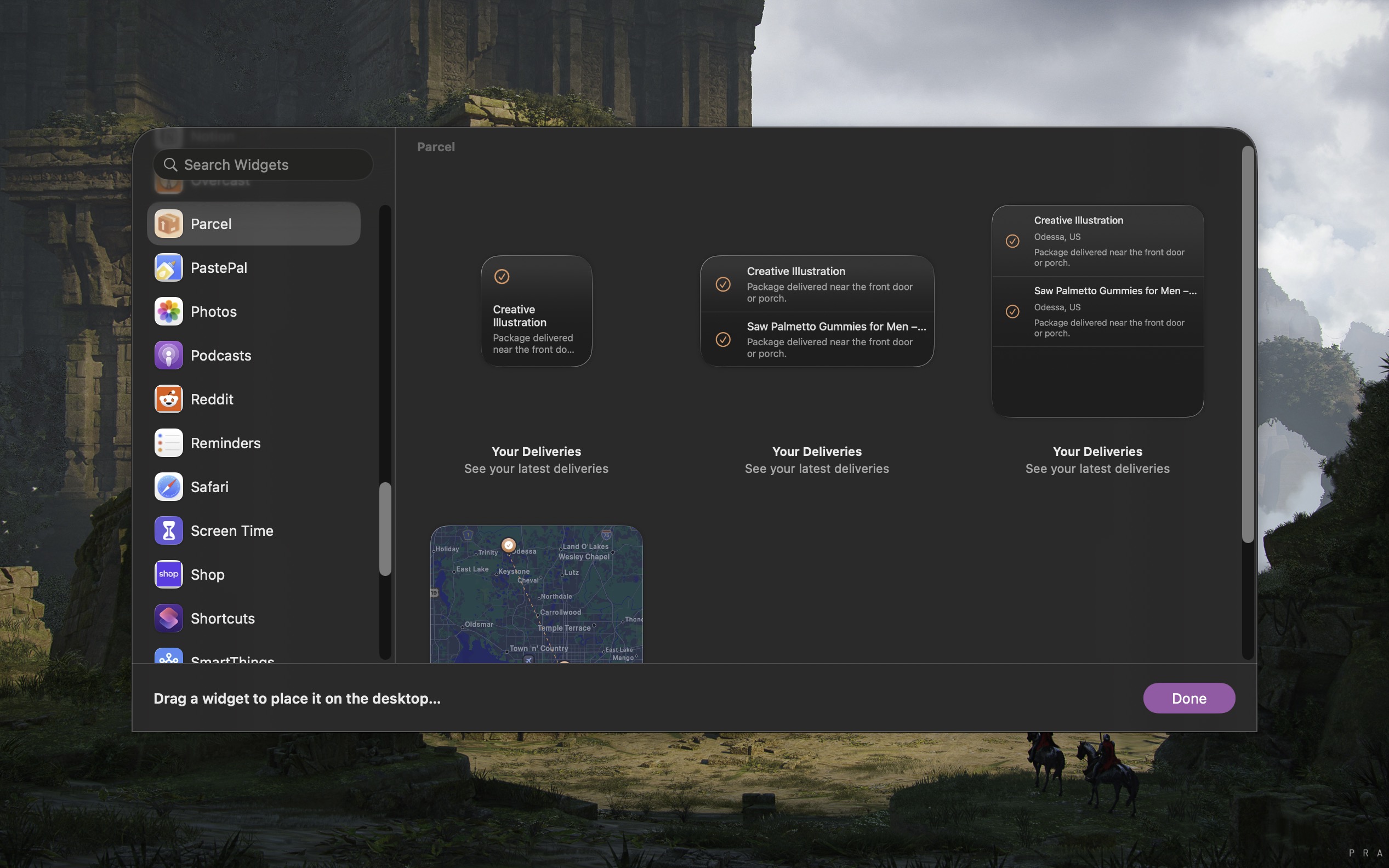 In addition to the app itself, Parcel can live in your Mac’s menu bar or as a widget floating on your Mac’s desktop. I find the Parcel widget to be most convenient, allowing me to glance at expected deliveries as I work. (Clicking on the Parcel widget will launch the Parcel app.)