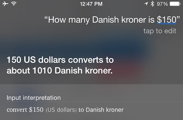 Siri is surprisingly useful for foreign travel, where it can help you to ease the transition between the units used in your home country and those of the countries you're visiting or supply you with directions from your hotel to a historic site. Of course, you'll need to have a data connection or be within spitting distance of a Wi-Fi...