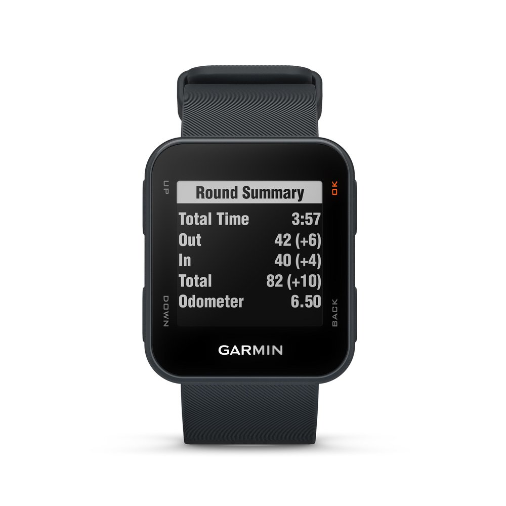 The Approach® S10 keeps track of the score. At the end of your round, it provides a summary of your round showing total distance played, total time and score.