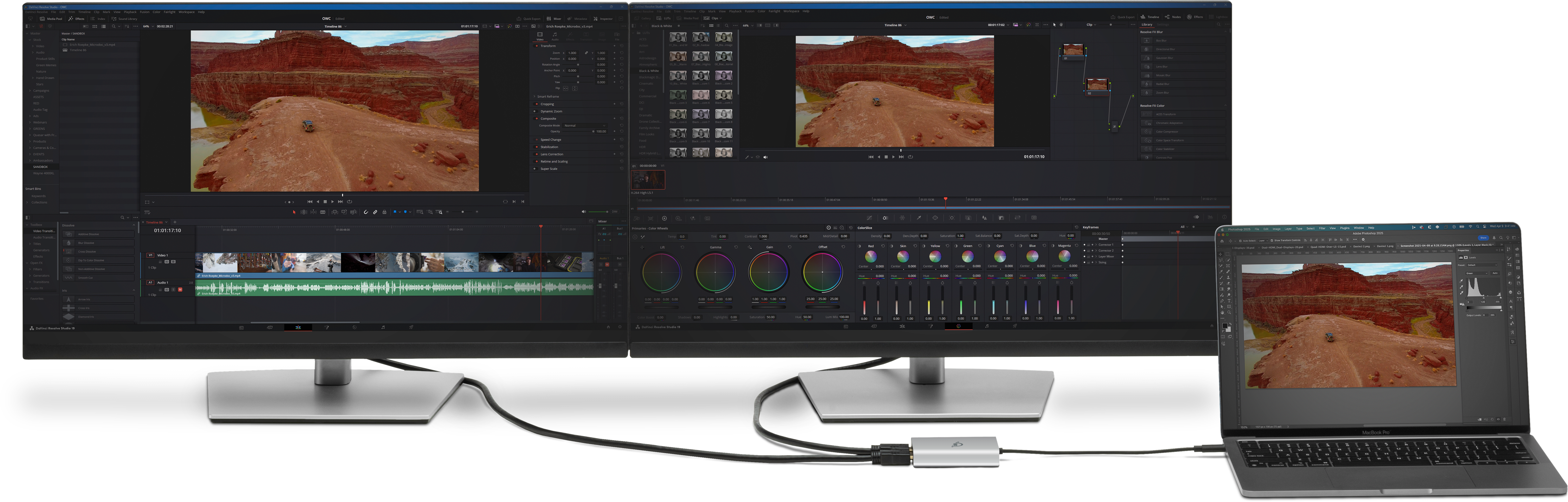 Adding dual display magnificence to your machine couldn’t be simpler. Just connect the OWC USB-C Dual HDMI 4K Display Adapter to your machine and your existing HDMI displays. Then download the DisplayLink Manager application (Mac) or driver (Windows) to launch yourself into an expansive new visual world.