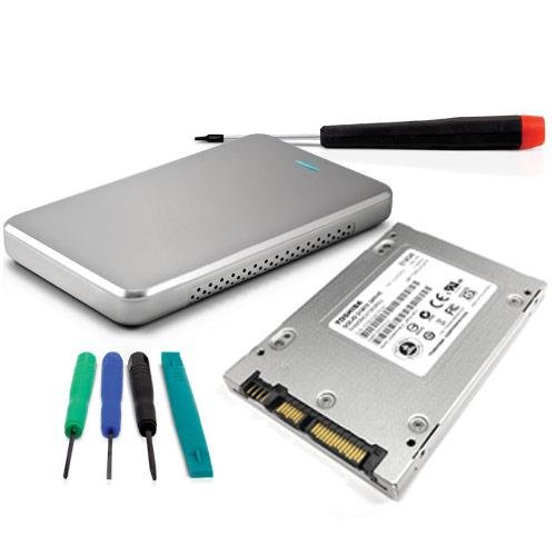 2.5" Toshiba SSD, OWC Express Silver Bus-Powered Enclosure, and OWC 5 Piece Installation Toolkit