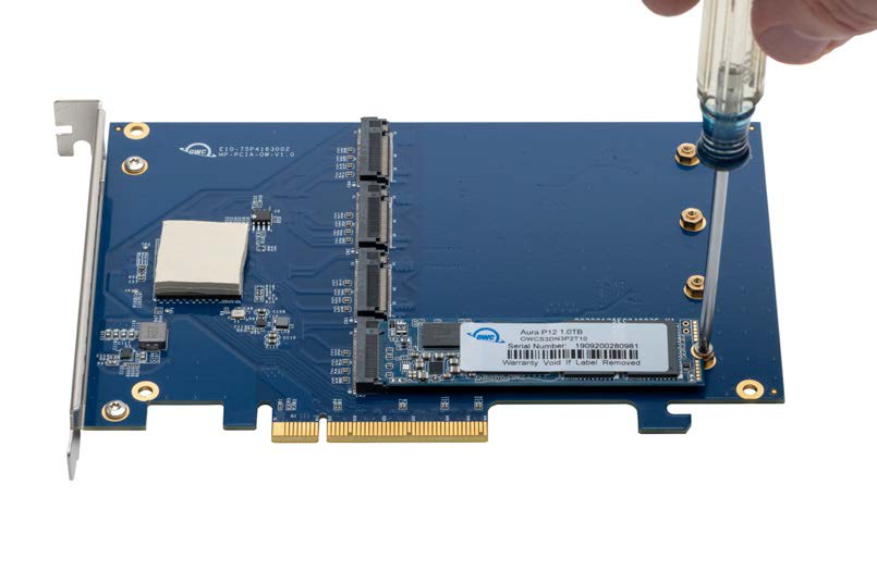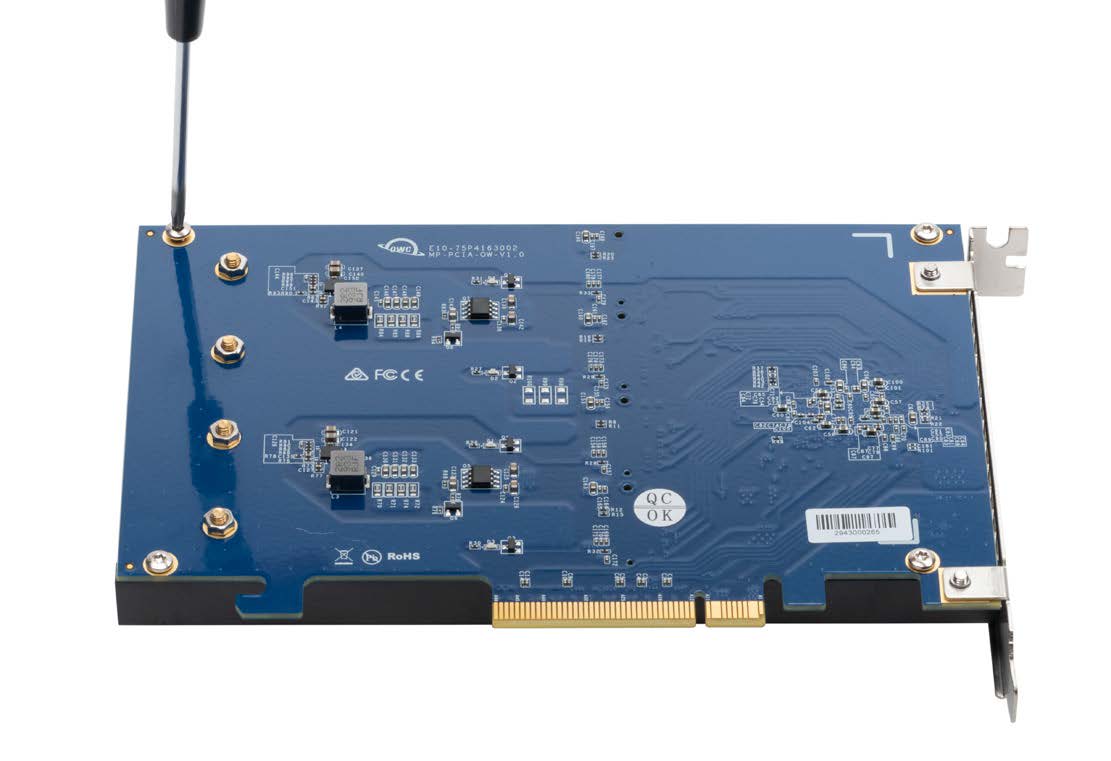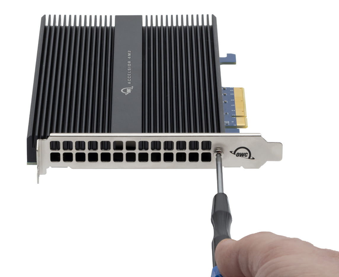 NOTE: The OWC Accelsior 4M2 will only physically fit into a 8x | 16x PCIe slot. Consult your host or enclosure manual to determine the PCIe slot location and physical size.