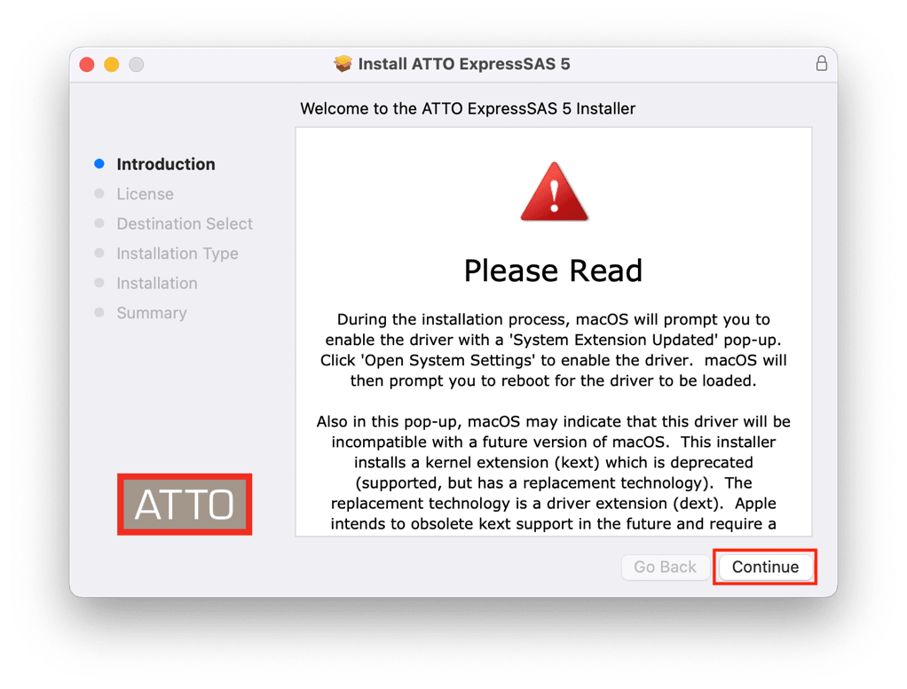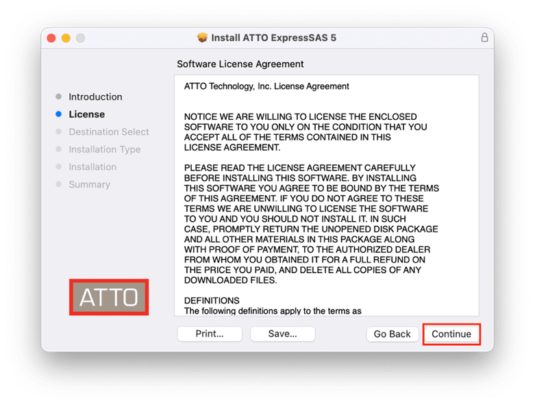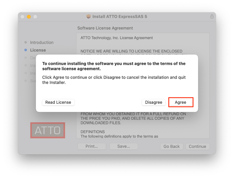 11. Read the ATTO license and select “continue.” Then select “Agree.”