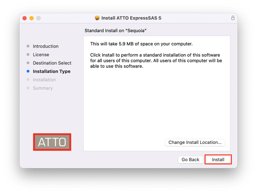 NOTE: Apple silicon Macs and Macs with T2 chipsets require reduced Security Settings to allow for the successful installation of the required SAS ATTO driver.