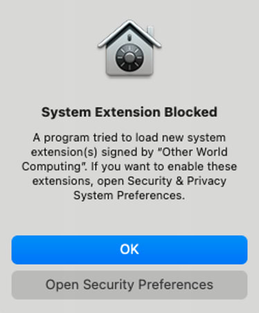 4. Installation of the proper driver is required for your Mac system to see and access the OWC Archive Pro LTO tape drive properly. Installation may require security authorized steps (dependent on your current system security settings) and will require a system reboot.