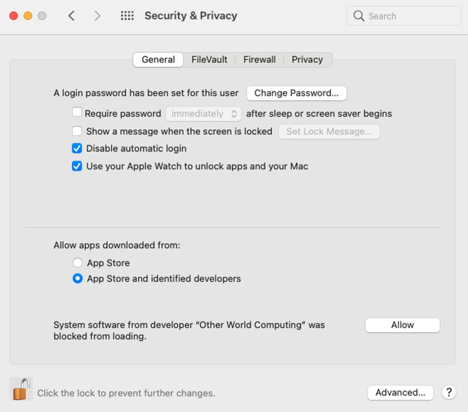 - During the installation of these components, you will be prompted as in the ExpressSAS kext above by the macOS gatekeeper to allow the MacFuSE extension to be enabled in Security and Privacy System Preferences. Follow the steps as outlined for the ATTO SAS driver above to enable the MacFuSE extension.
