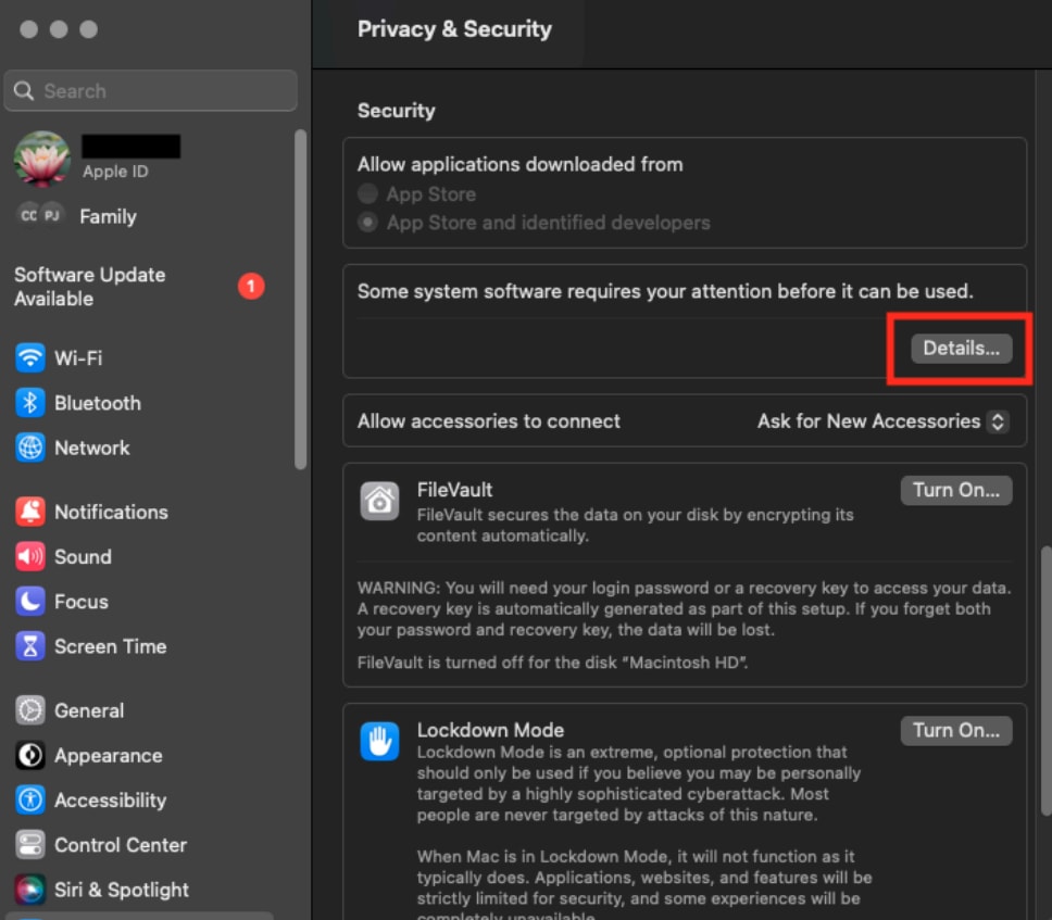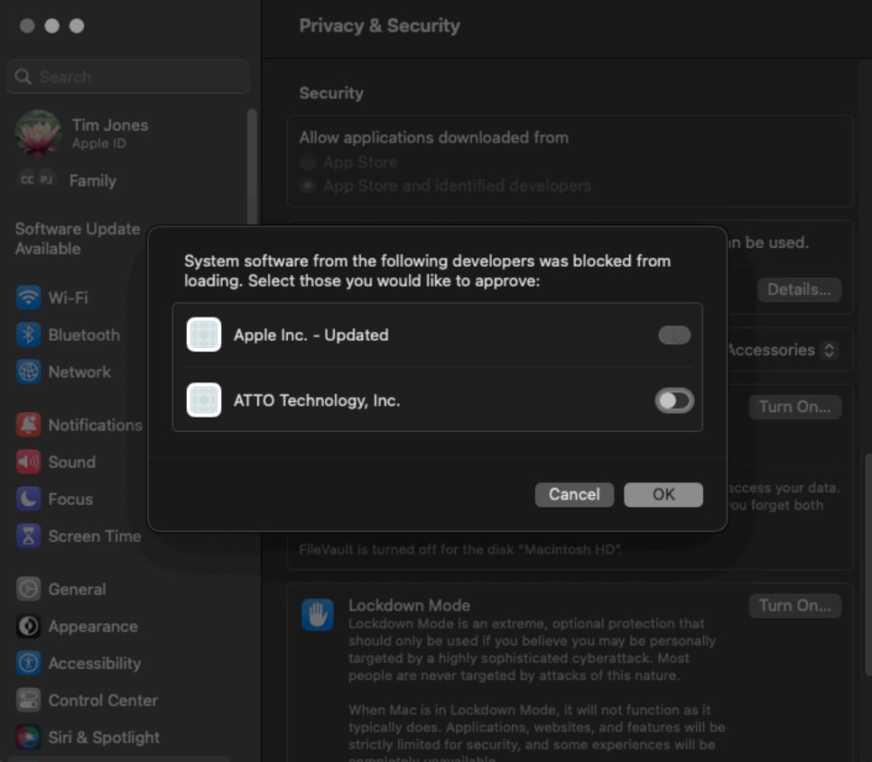 - macOS 13 and later users should click “Details” and then toggle on ATTO Technology, Inc.