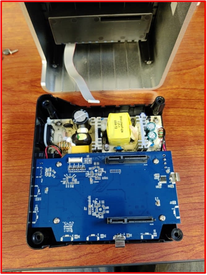 - Please Note: There is ribbon cable connected from the drive bay to the board inside. The drive bay ribbon cable is not long enough to remain connected with the silver casing while resting on a flat surface. The drive bay ribbon cable will need to be disconnected while holding the silver casing. This is covered in the next step.