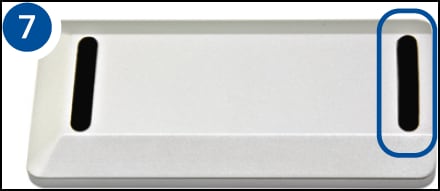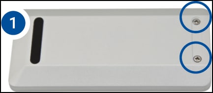 6. Place the cover back on the OWC Envoy Pro 1A starting with the LED side and laying down towards the USB port. Secure the cover using the (2) removed case screws form earlier using a Torx T5 driver.