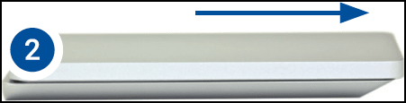 2. After the screws are removed, flip the enclosure over and lay it right-side up. Remove the cover by lifting up neat the LED and sliding it away from the USB port.