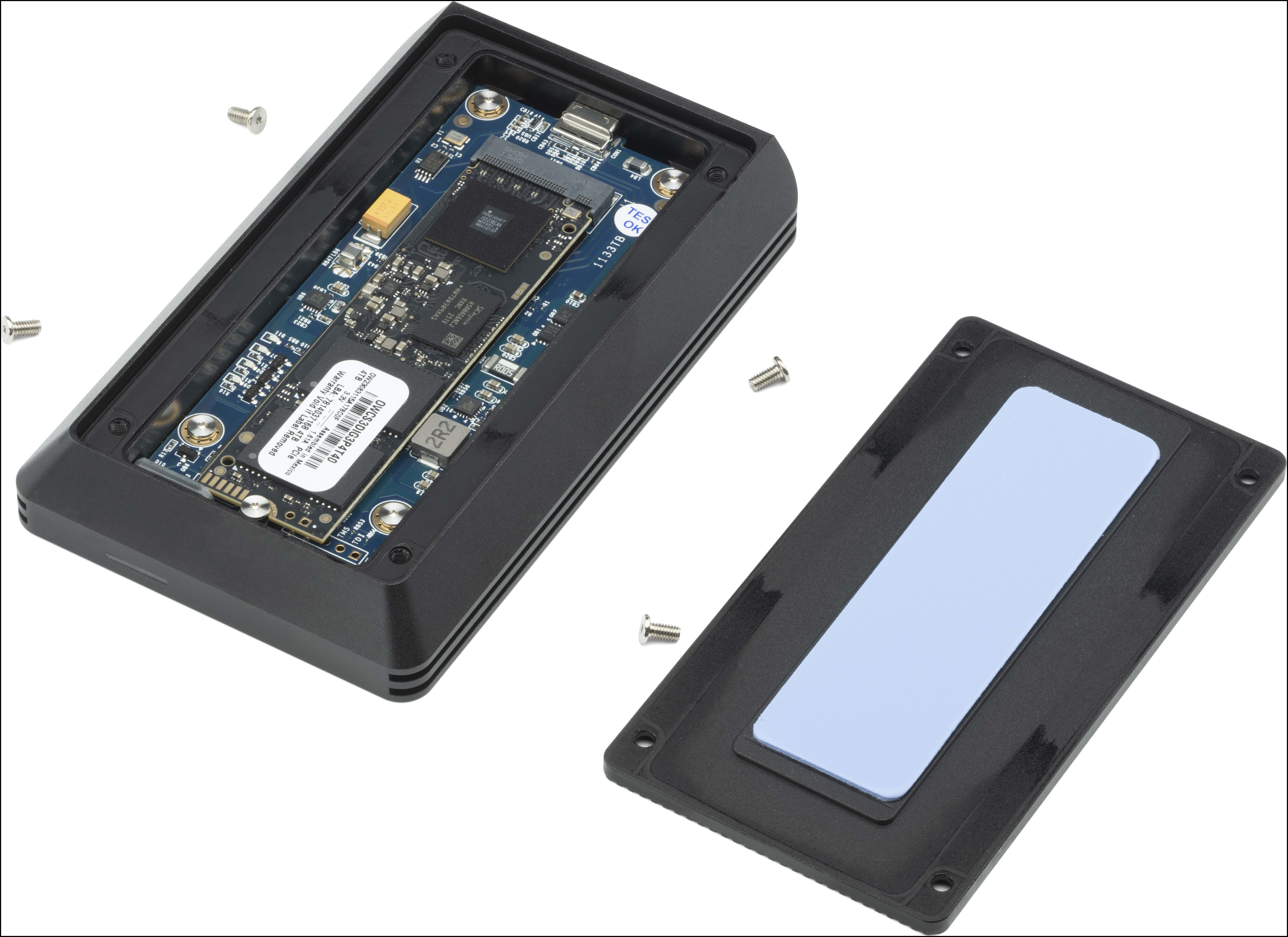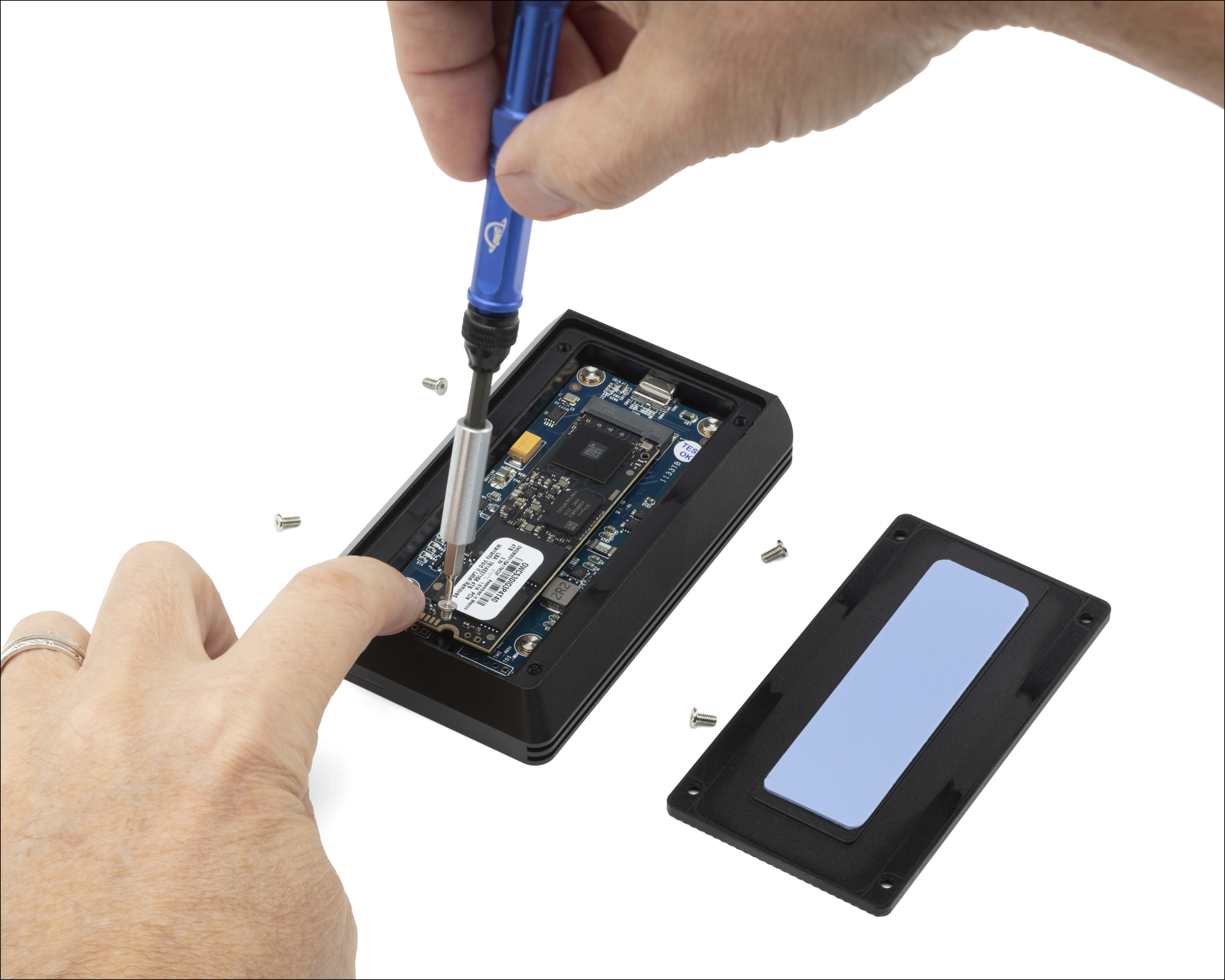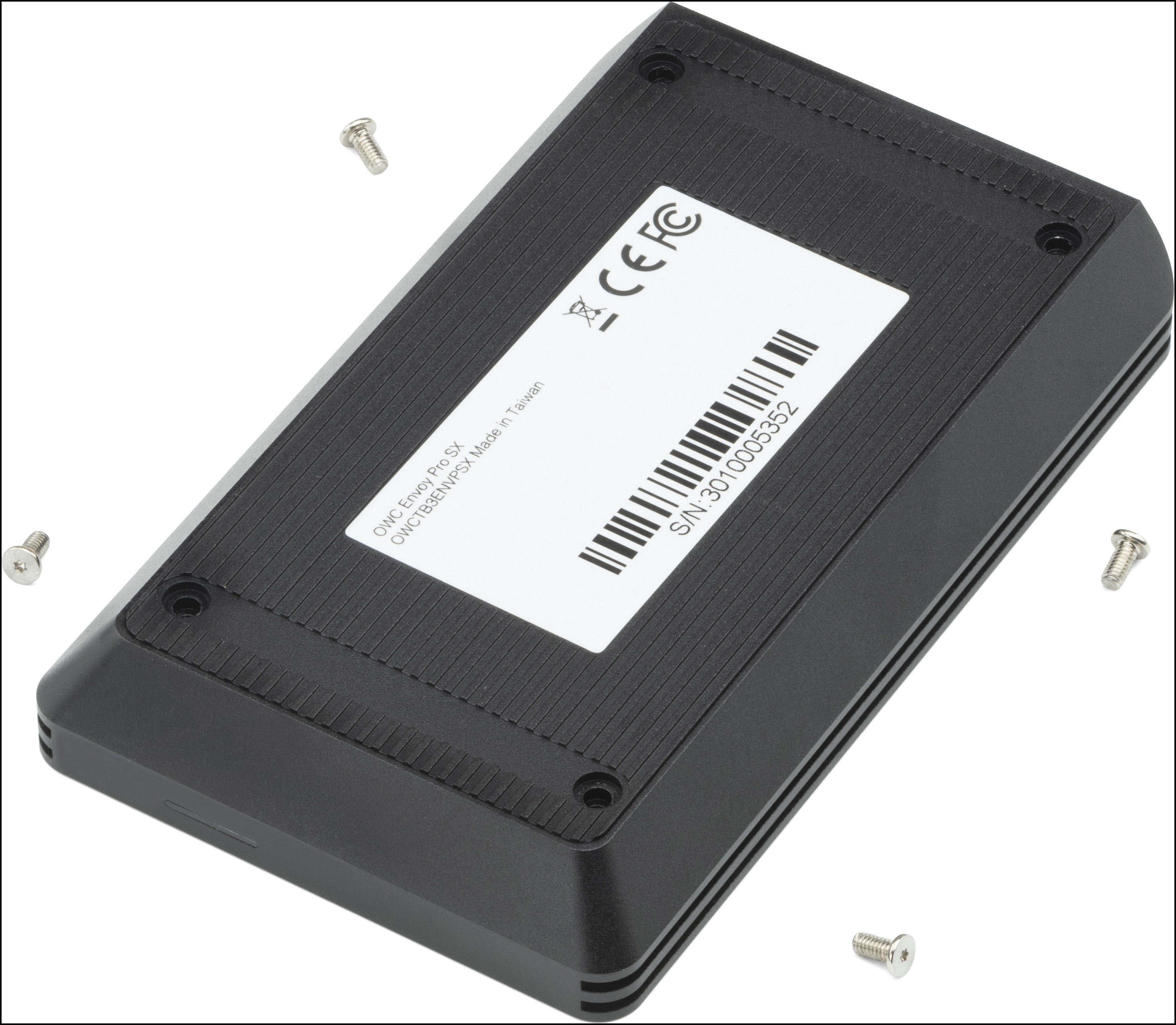 5. Place the cover back on the OWC Envoy Pro SX. Secure the cover using the (4) removed case screws form earlier.