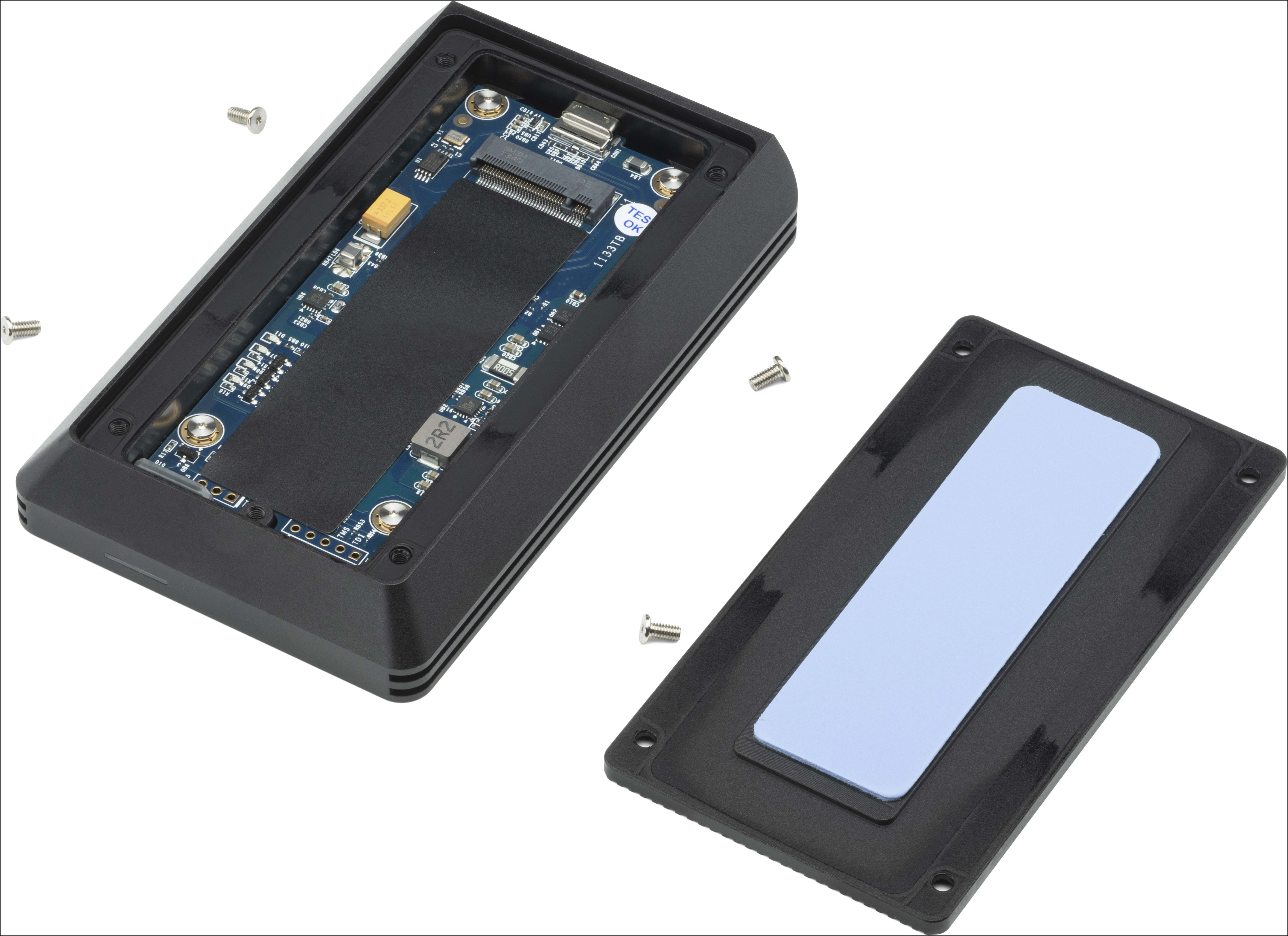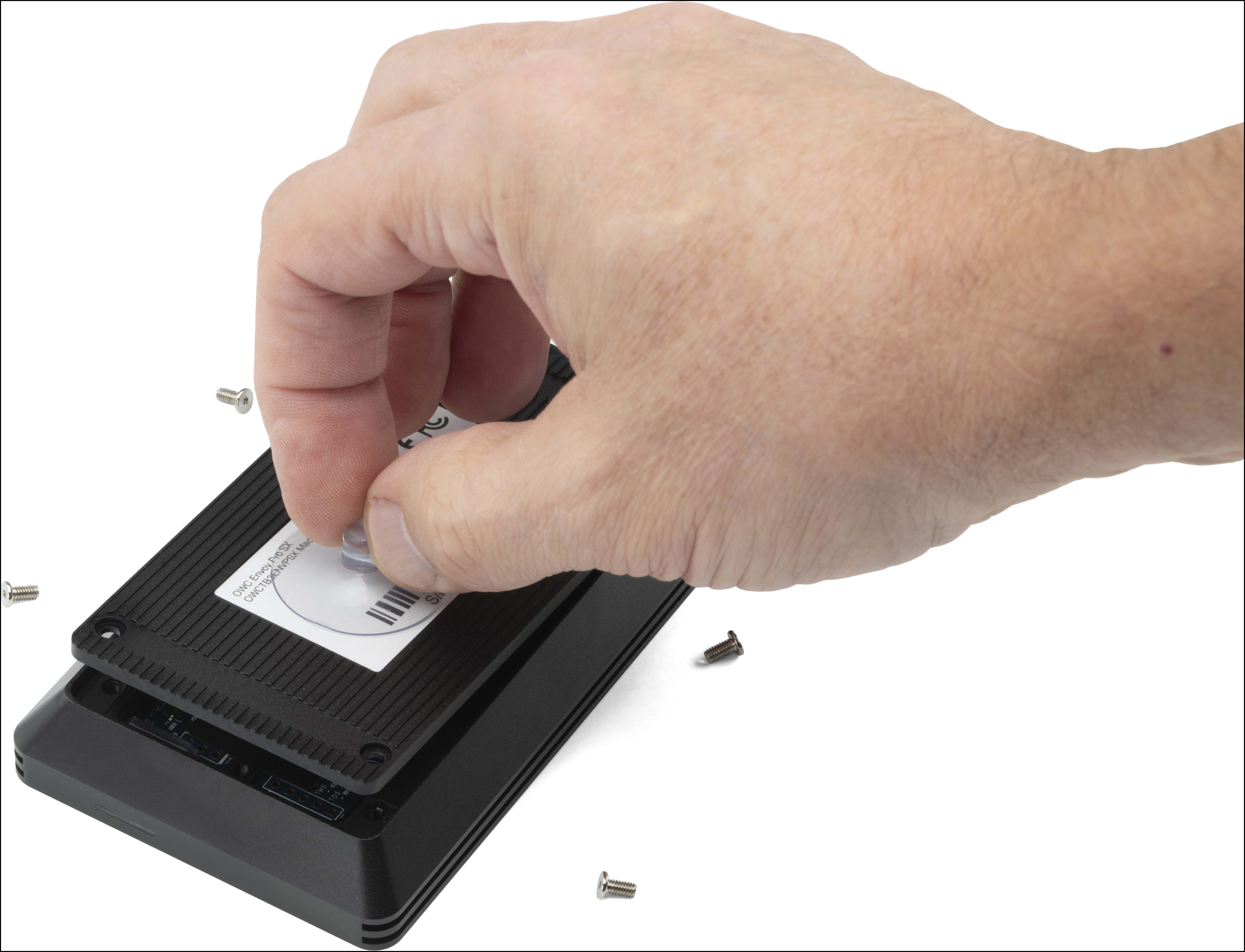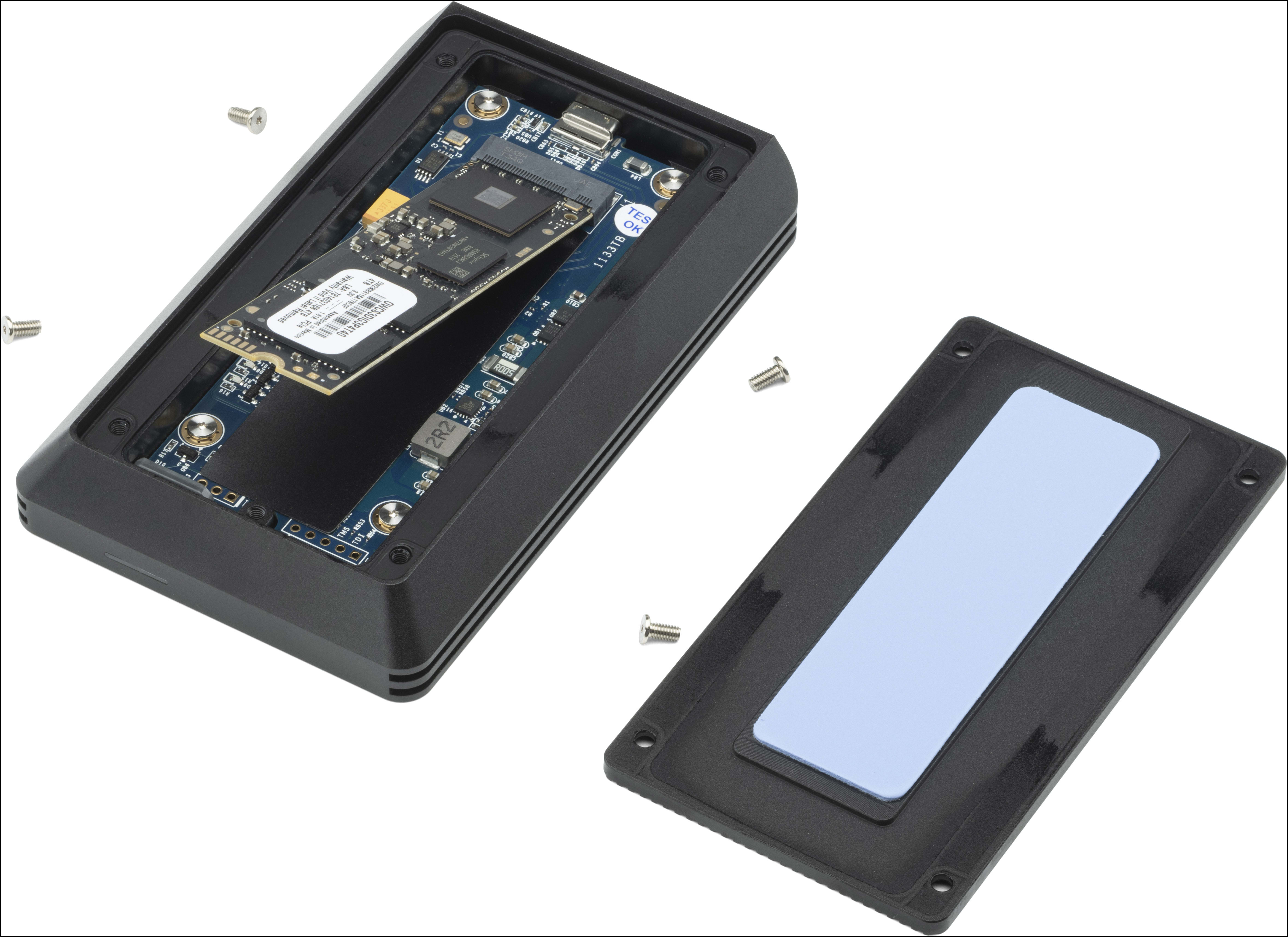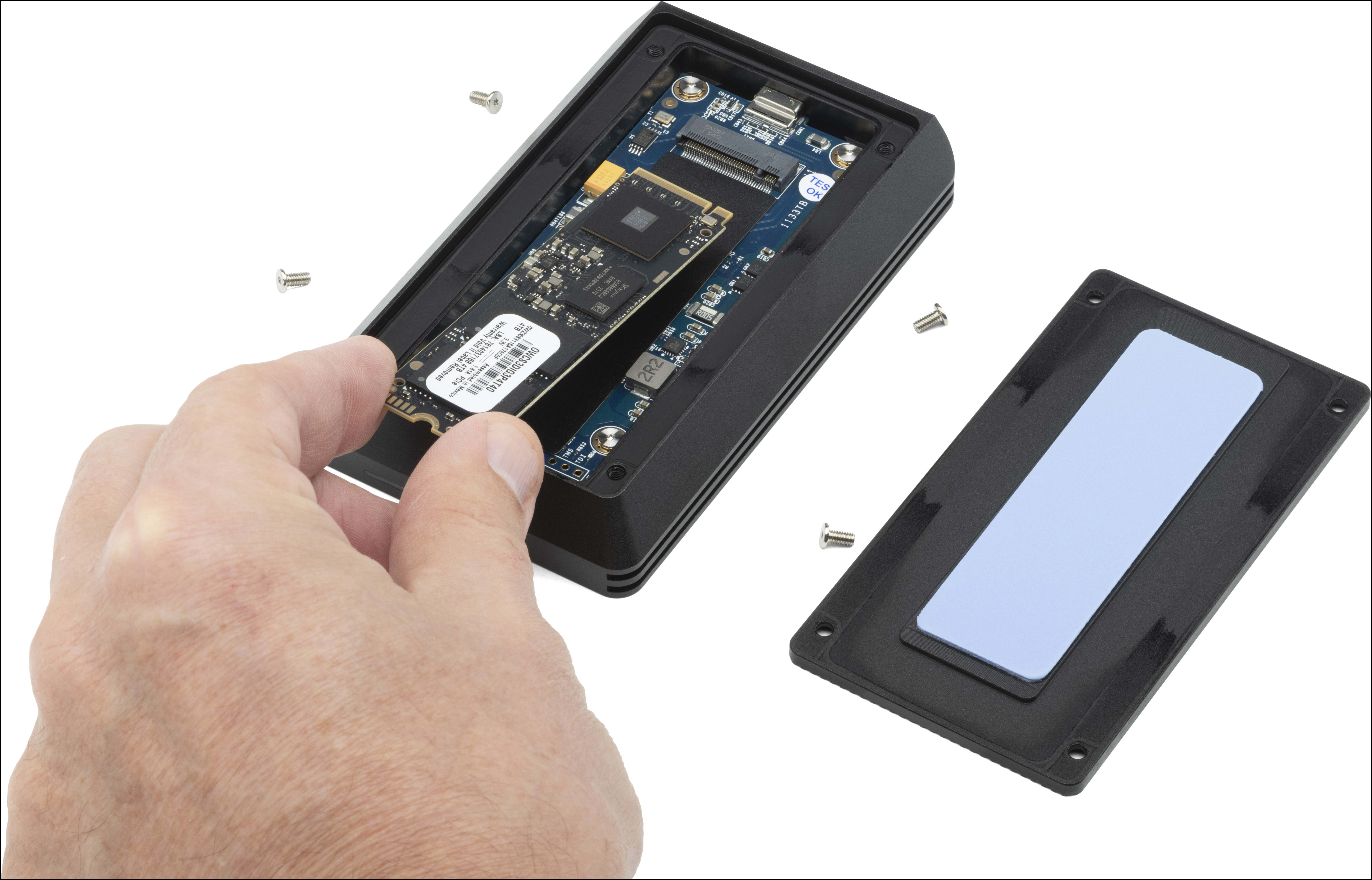 5. Place the cover back on the OWC Envoy Pro SX. Secure the cover using the (4) removed case screws form earlier.