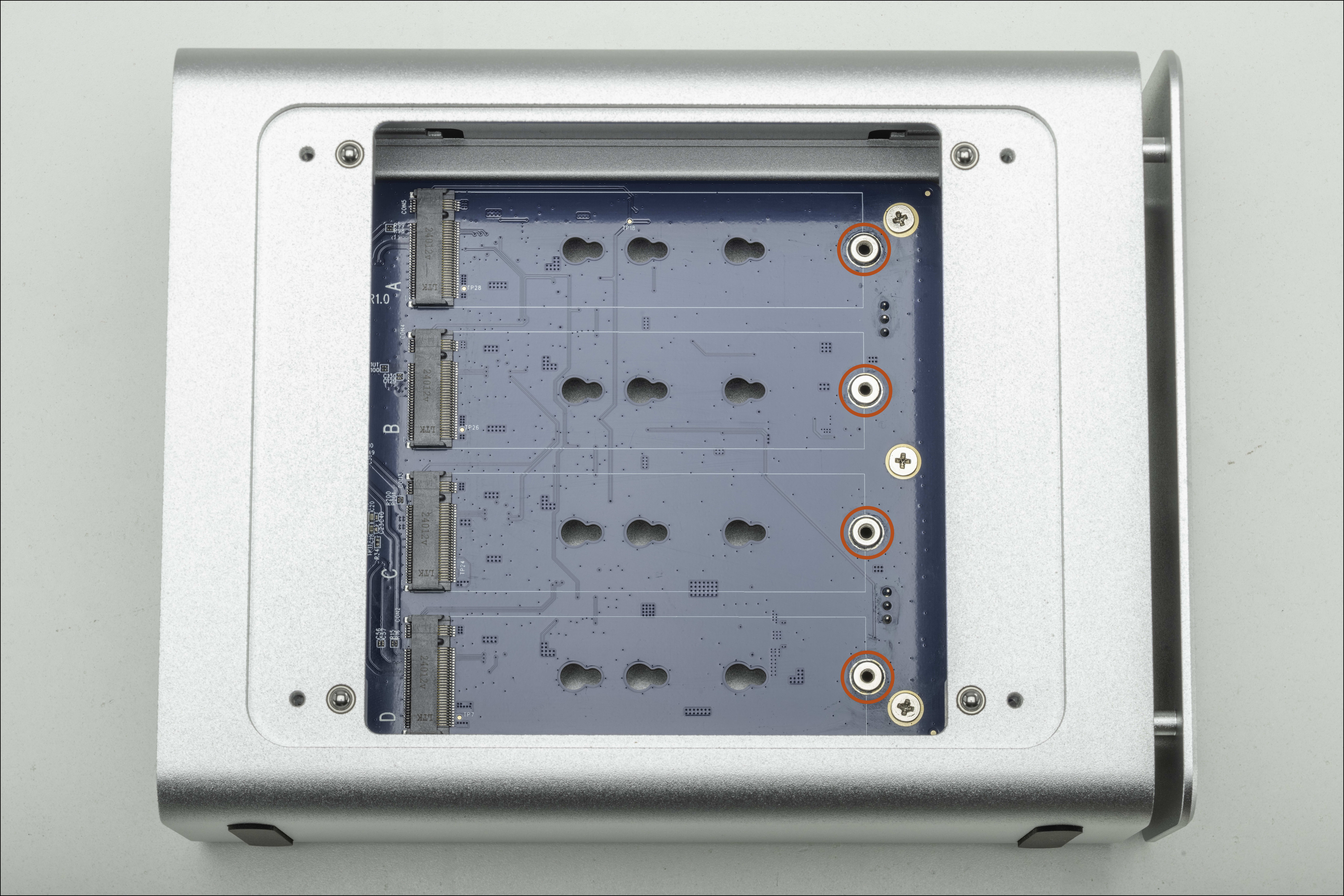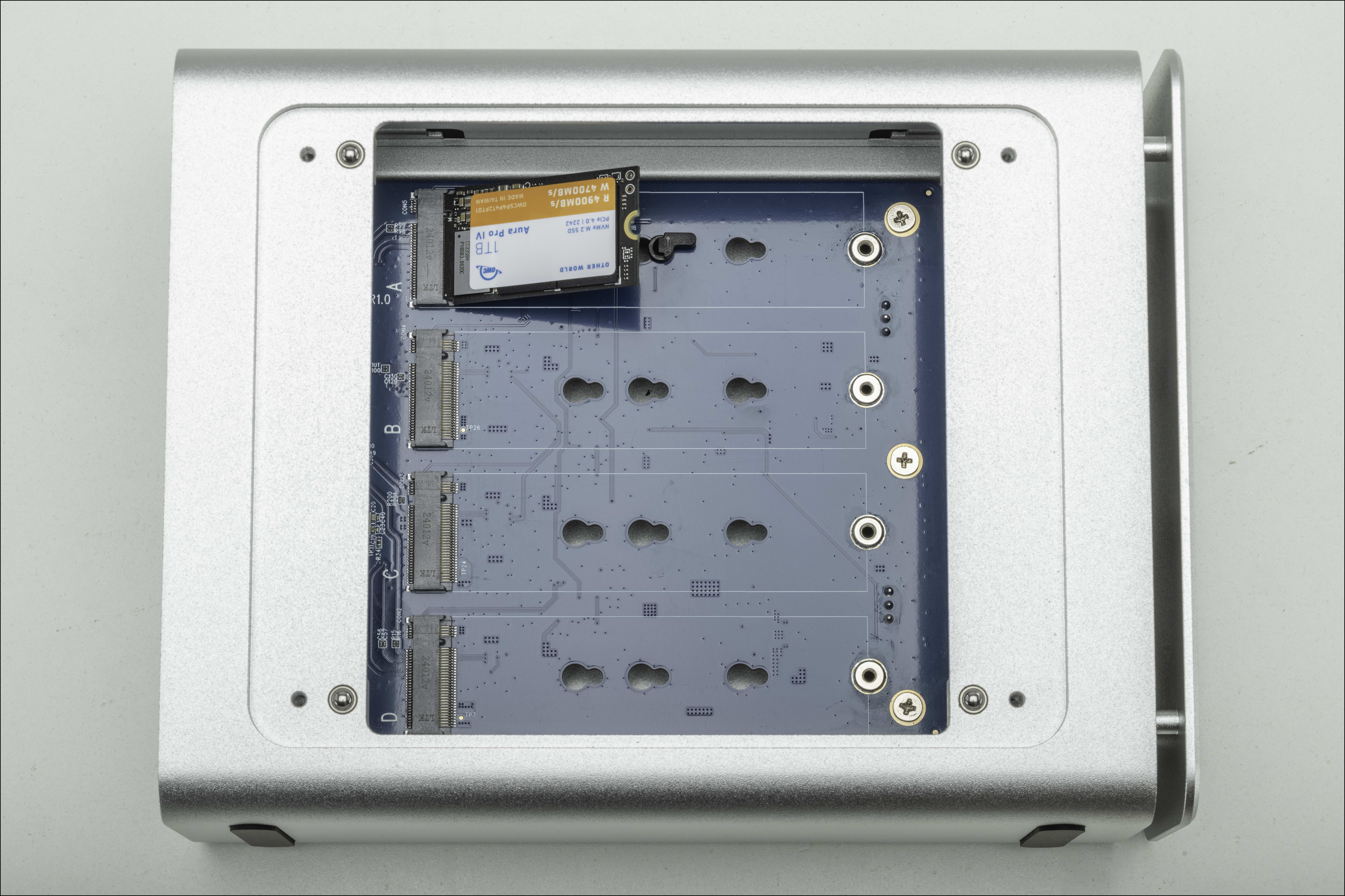 4. Repeat this process (3) additional times resulting in (4) installed 2280 NVMe M.2 SSDs.