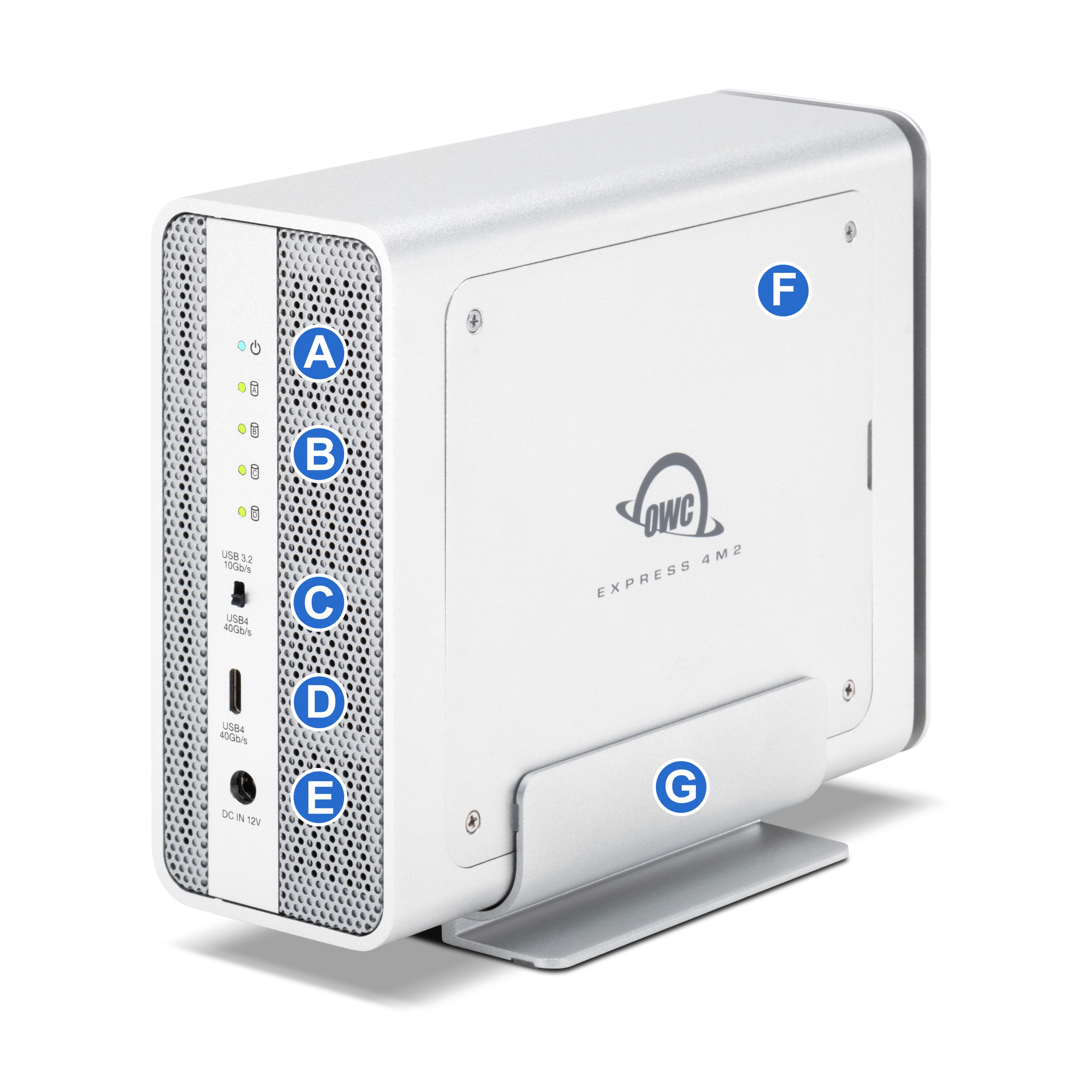 G. Aluminum Vertical Stand - OWC recommends attaching to stabilize the device while on a flat surface.