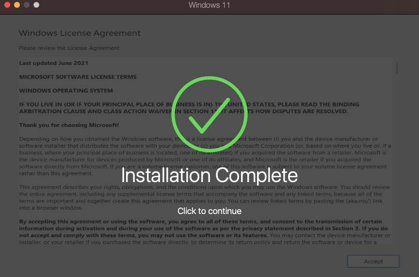 8. Once Windows has installed, an account window will appear. Login or create an account to begin using Parallels