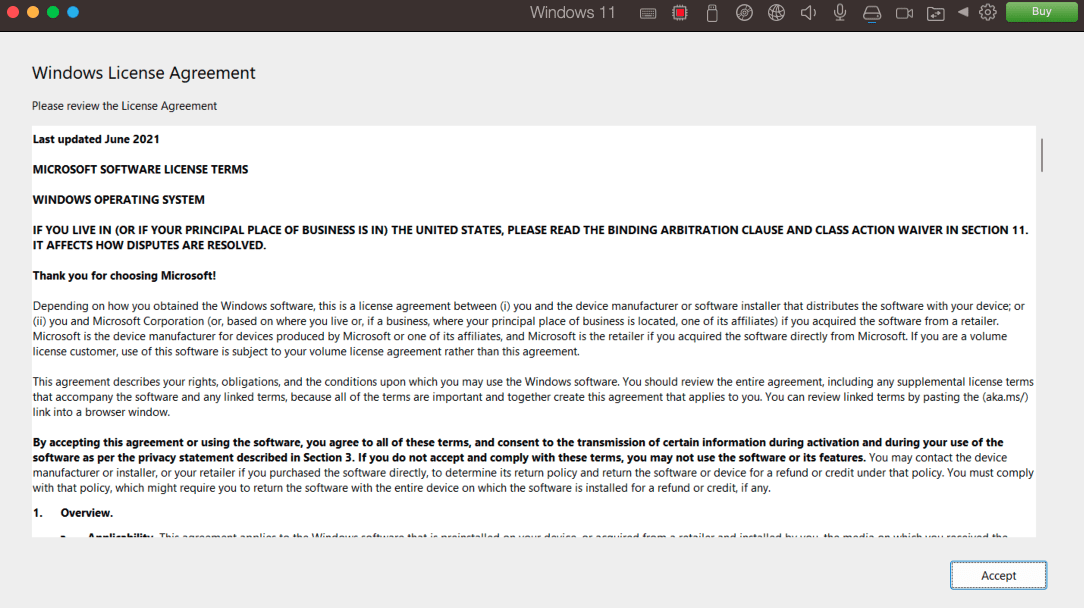 9. Agree to Window’s license agreement. A Windows desktop will appear and is ready for use