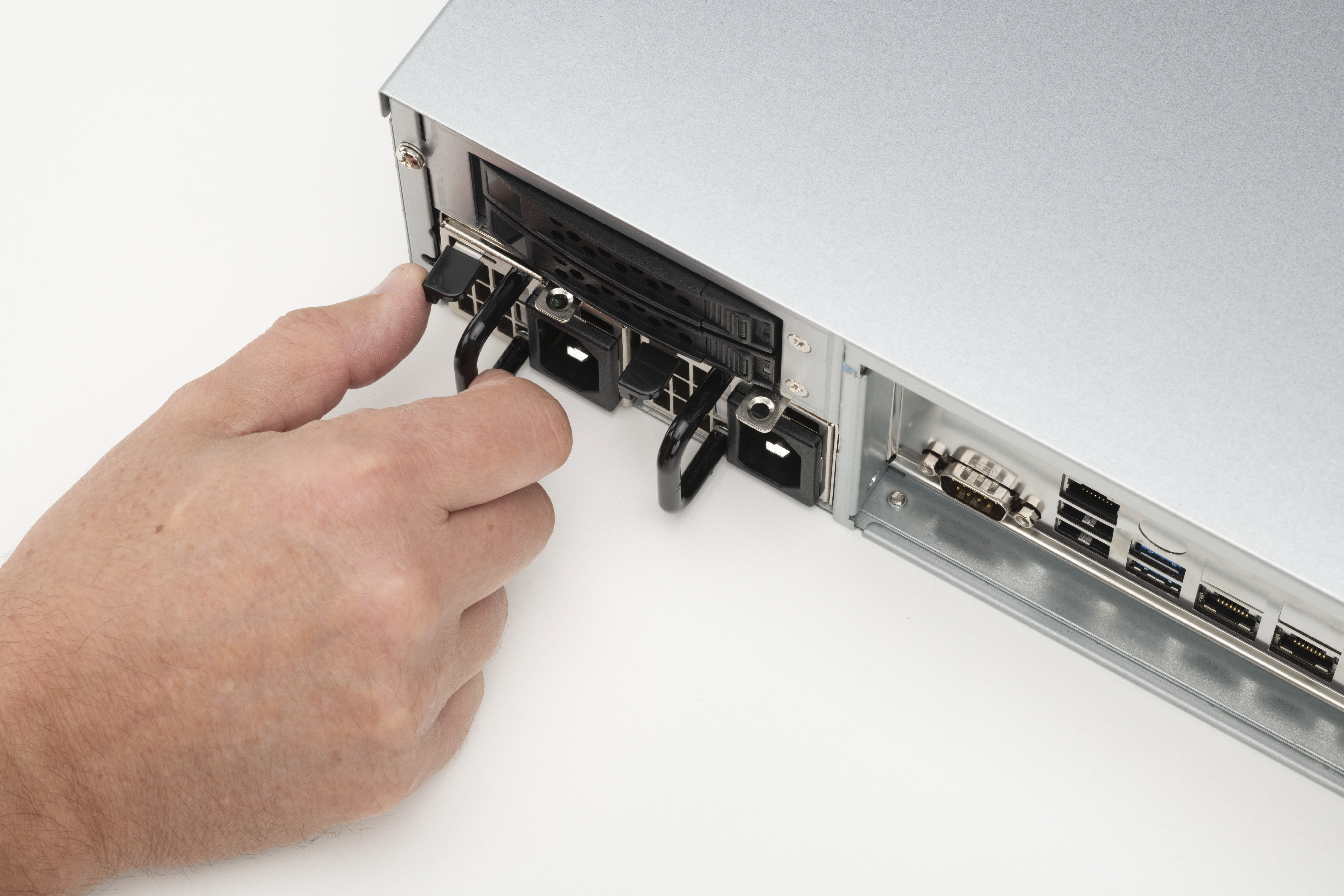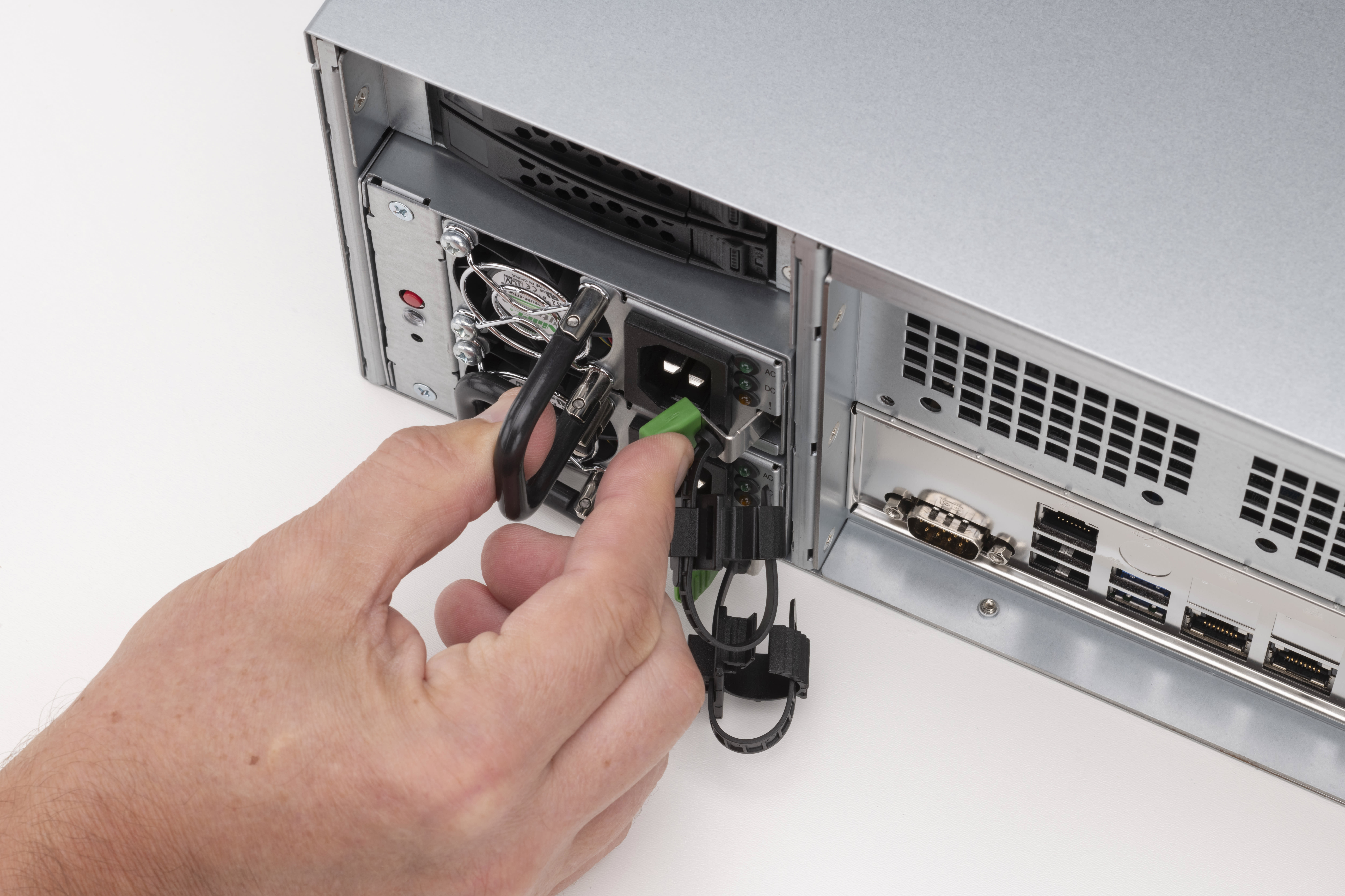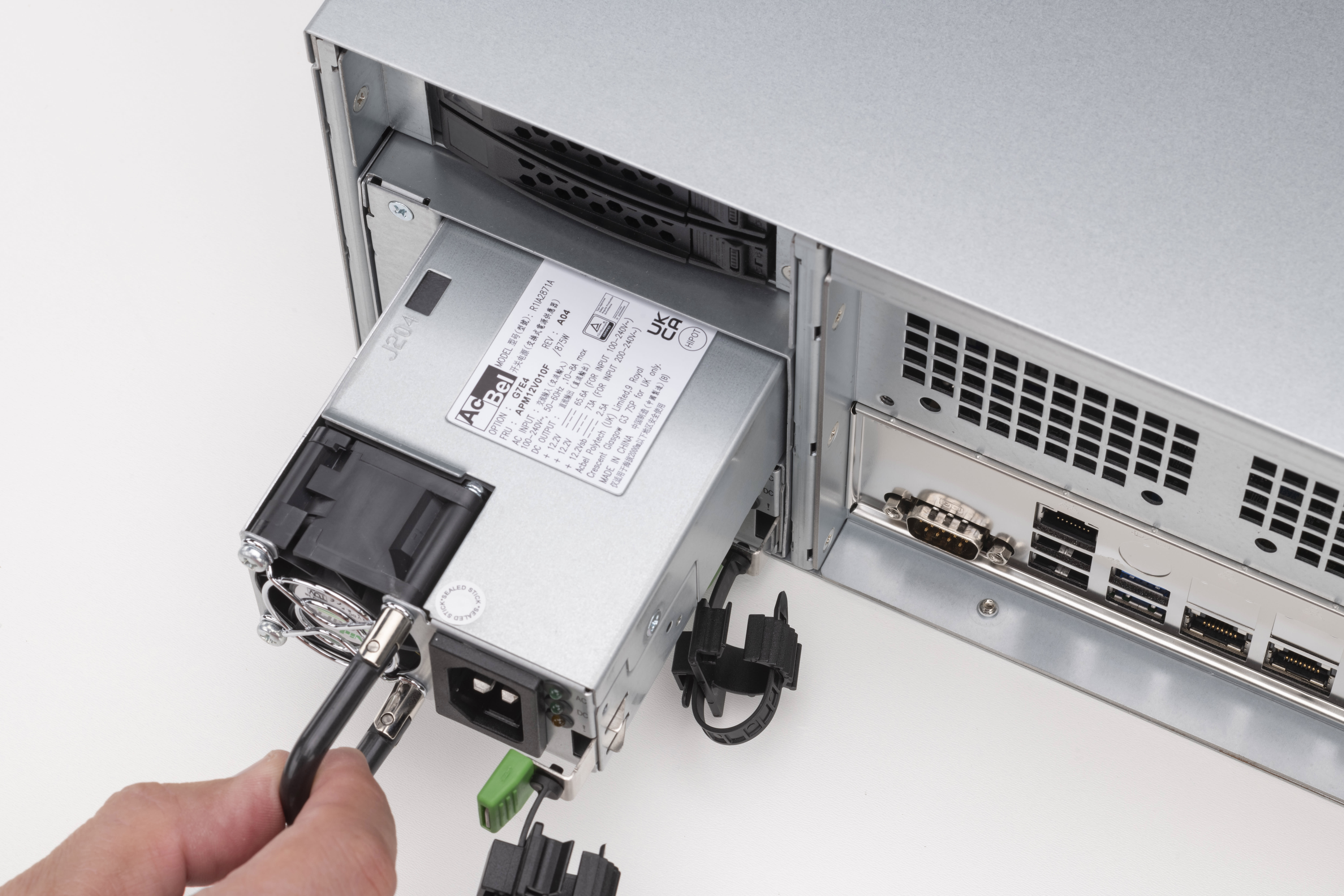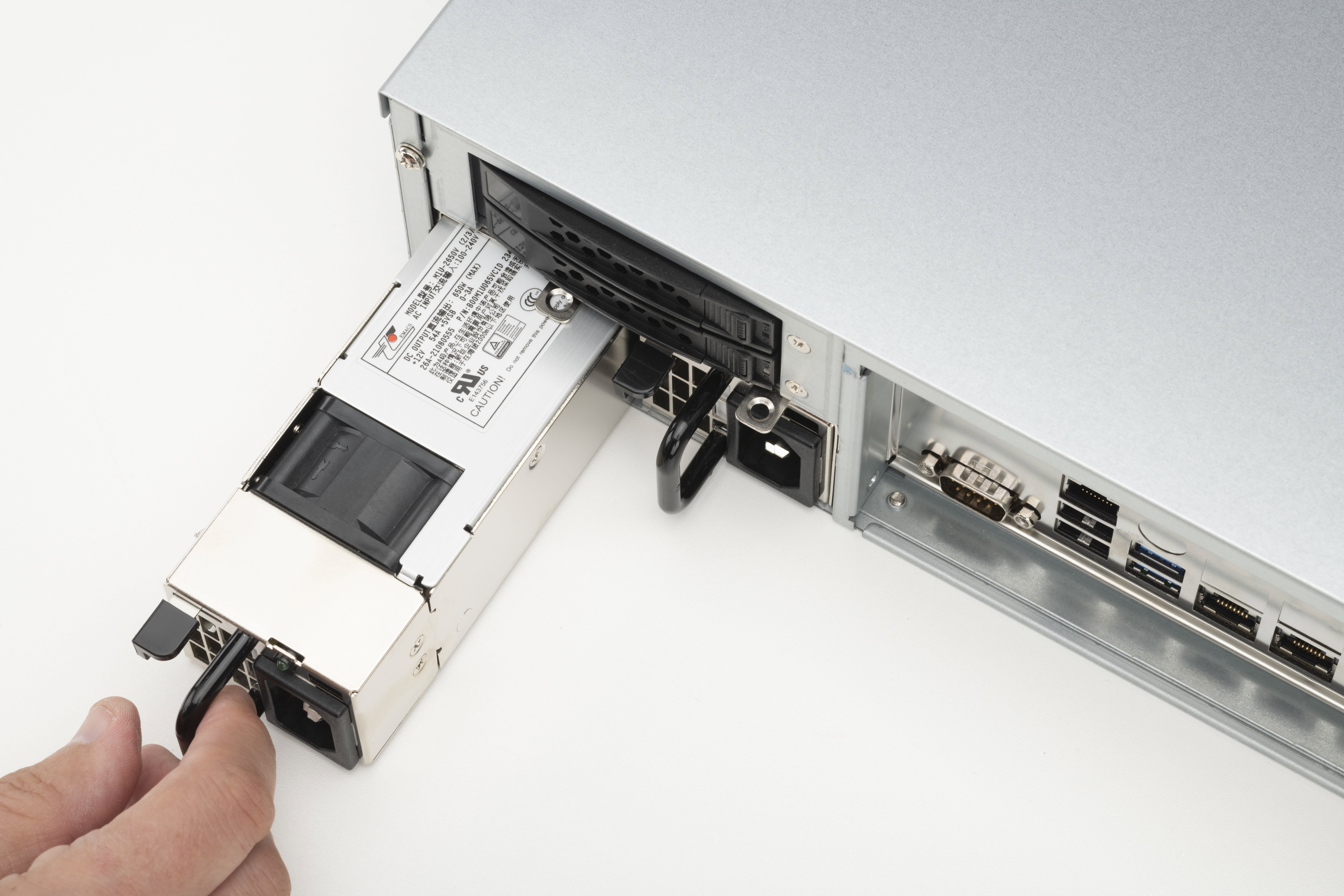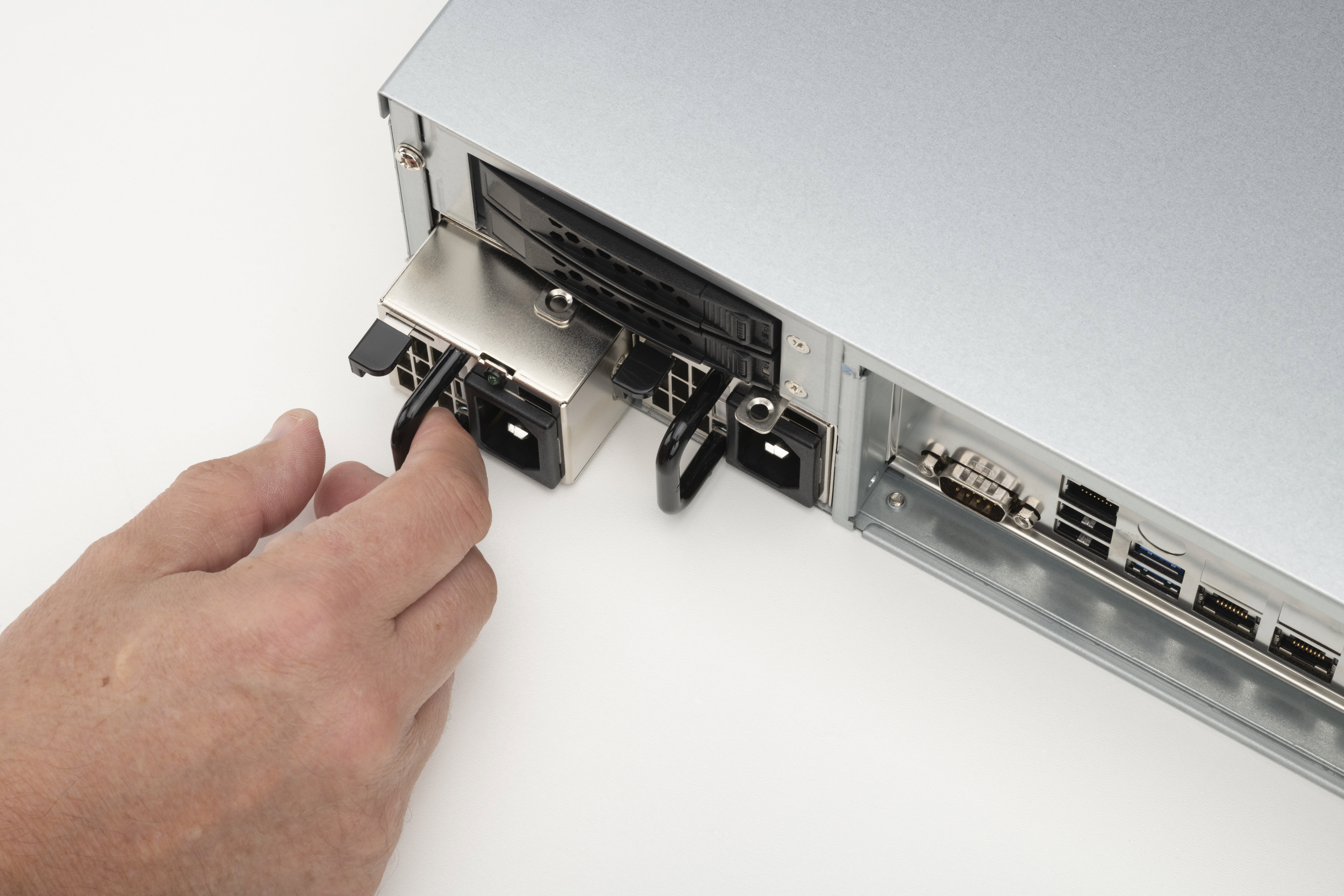 While all of the power supply modules are healthy, the power load is automatically balanced across them. In the event of a power supply failure, an alarm will sound and the ‘Power’ LED on the front of the unit will turn solid red. Please complete the following instructions to replace a failed power supply module.