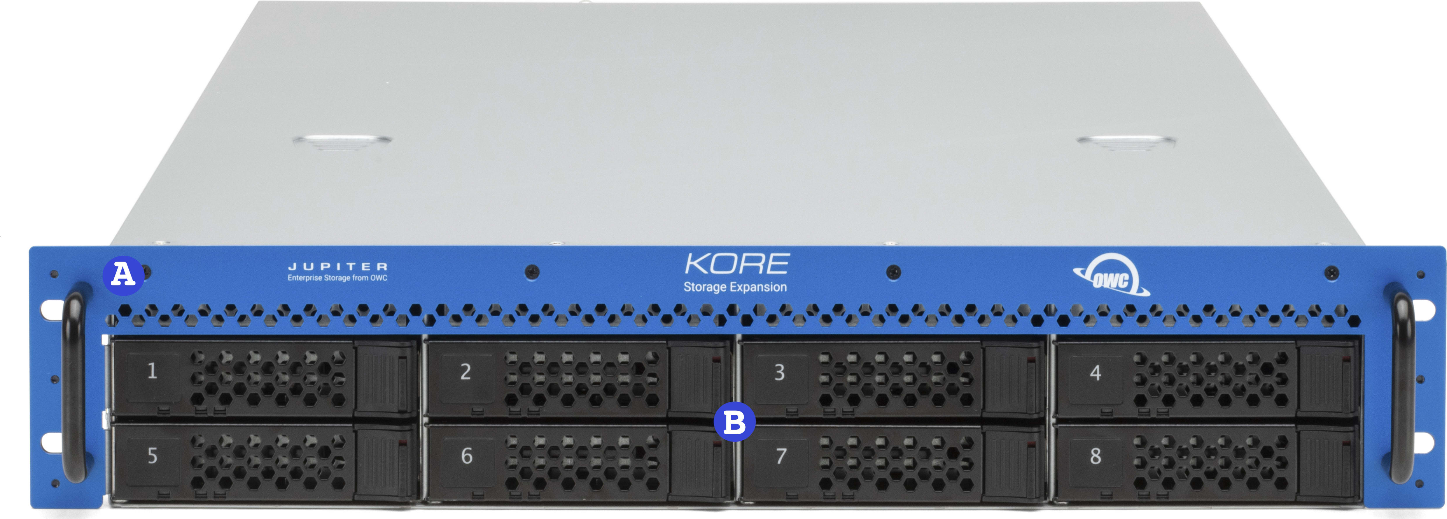 1. The Jupiter Kore requires two (8-bay) or three (16-bay) rack units of space. Take note of which units in your rack that you will install your Jupiter Callisto into.