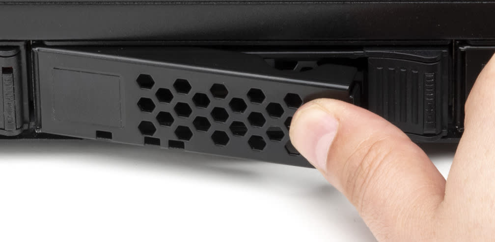 1. Disengage the drive tray by pushing the tray tab to the right. The drive tray will protrude slightly from the chassis. Carefully remove the drive tray and place on a flat surface.