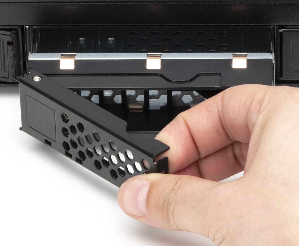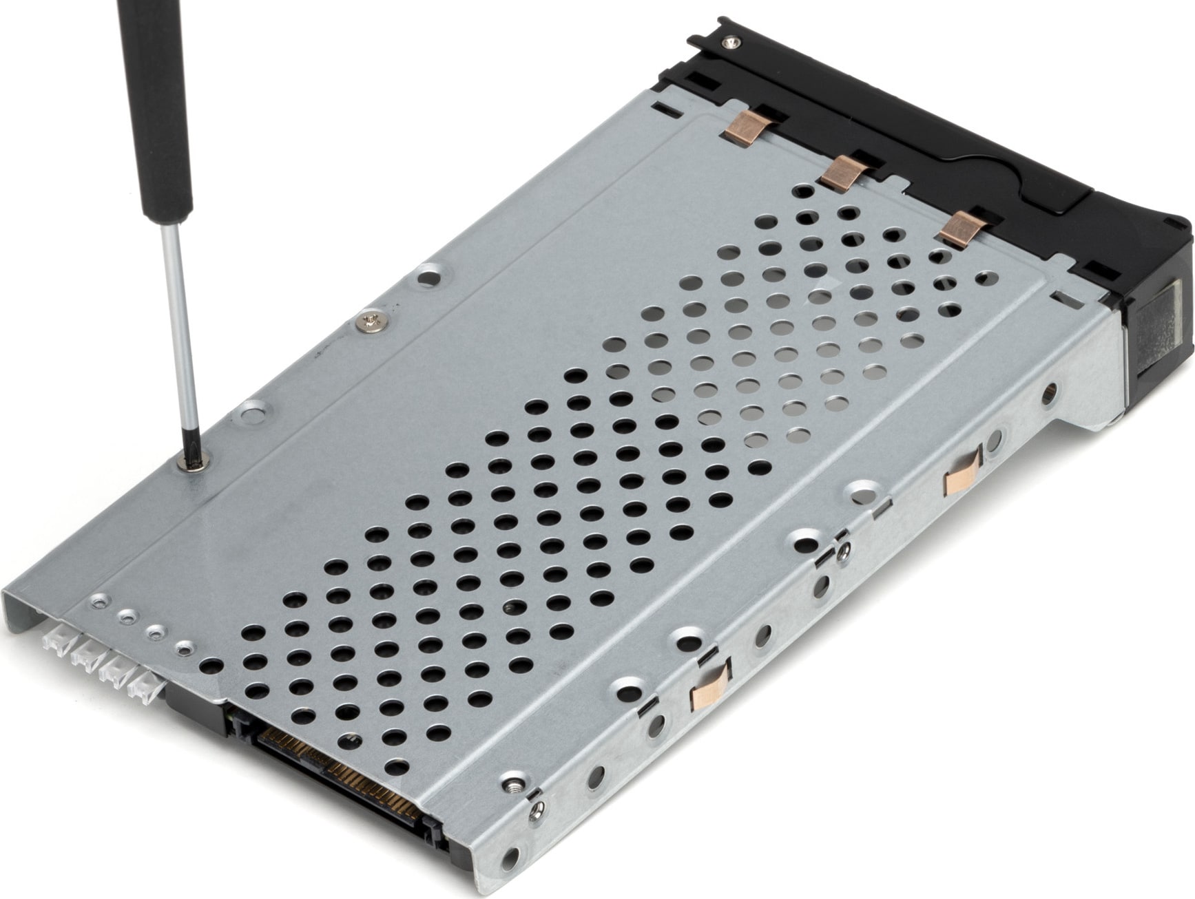 NOTE: 2.5-inch drives will need to be installed with a spacer and secured on the bottom of the drive tray.