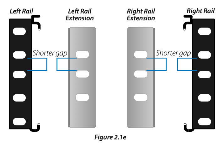 7. Before securing the rear rail extension to the back of your rack, make sure to slide the extension into the rail as seen in Figure 2.1h.