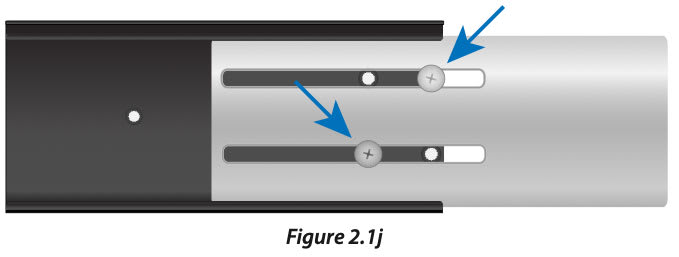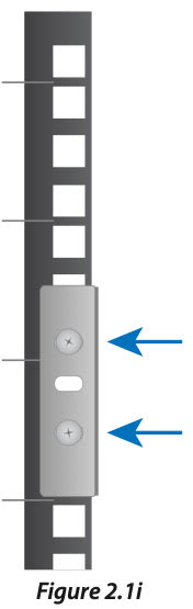 8. Secure the rear rail extension to your rack use two of the included M5 pan head screws as seen in Figure 2.1i.