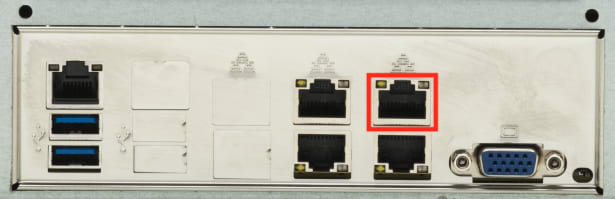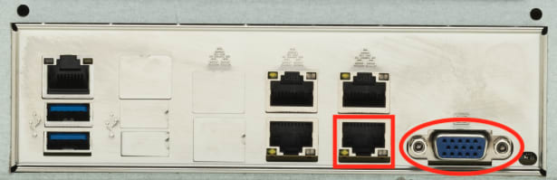 3. Connect a VGA monitor to the VGA port located on the back of the OWC Jupiter Mini to determine the unit’s management IP address. The DHCP IP address will be used for accessing the OWC Jupiter Mini share (ex. 172.21.124.254).
