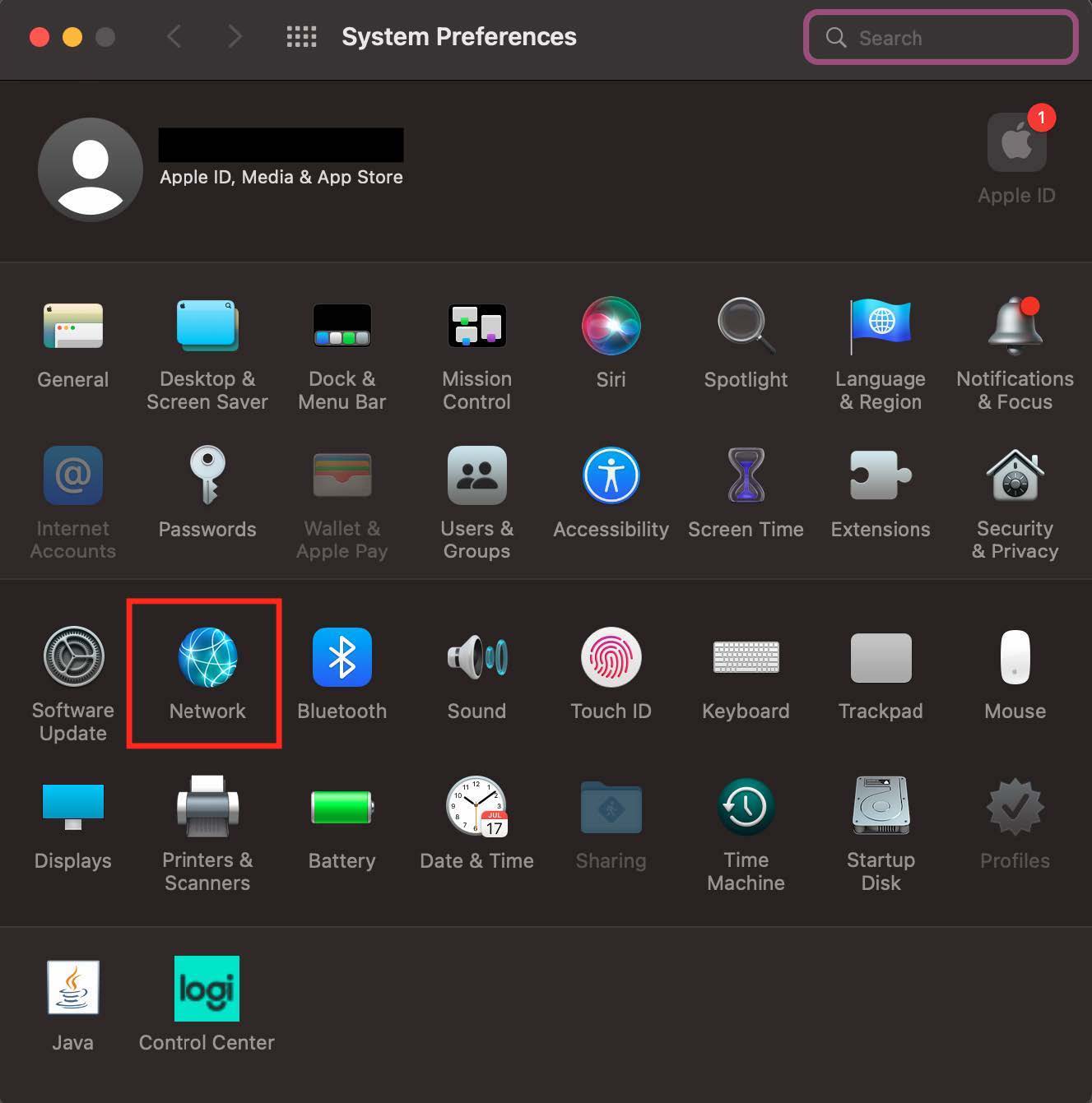 1. The network adapter connected to the OWC Jupiter Mini needs to have the network settings updated with the devices Static IP address. Navigate to "System Preferences" and select "Network".