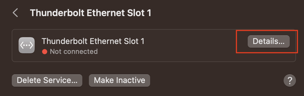 2. Locate and select the network adapter connected to the OWC Jupiter Mini to be configured. Names of the adapters will vary based on the connection type.
