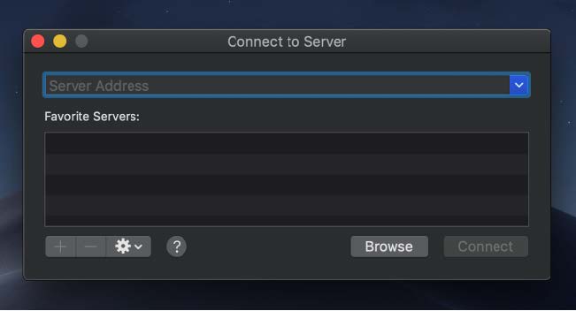1. From the Mac Desktop press "Command + K" to access the "Connect to Server" window.