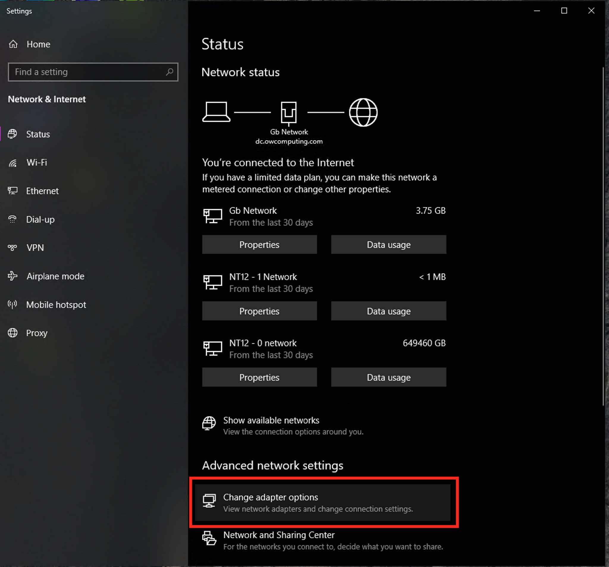 2. Scroll down to "Advanced Network Settings" section and click "Change adapter options".