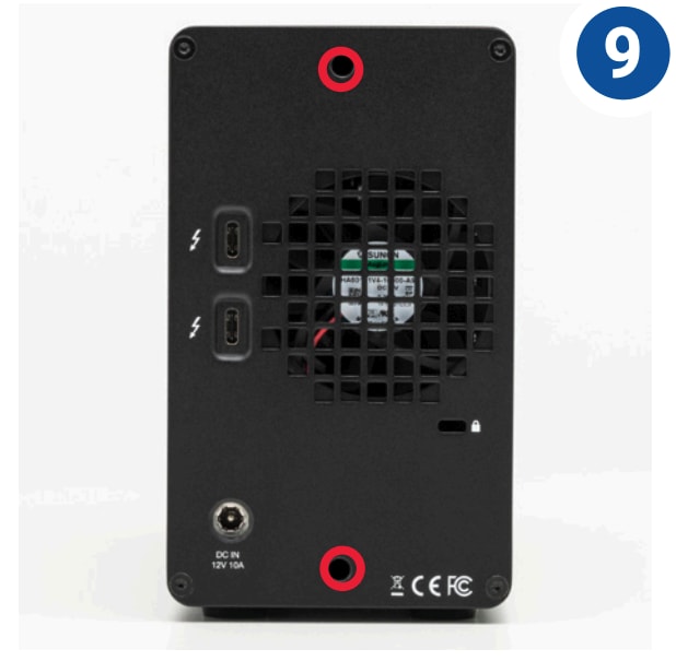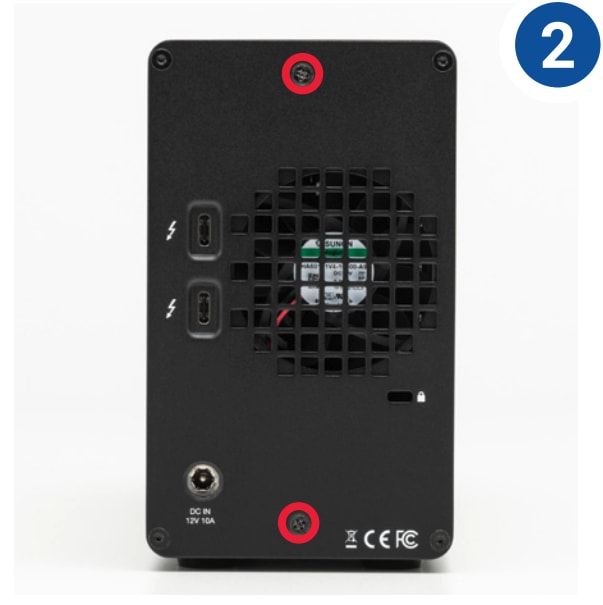 2. Remove the two screws highlighted in red from the back of the enclosure and set them aside.