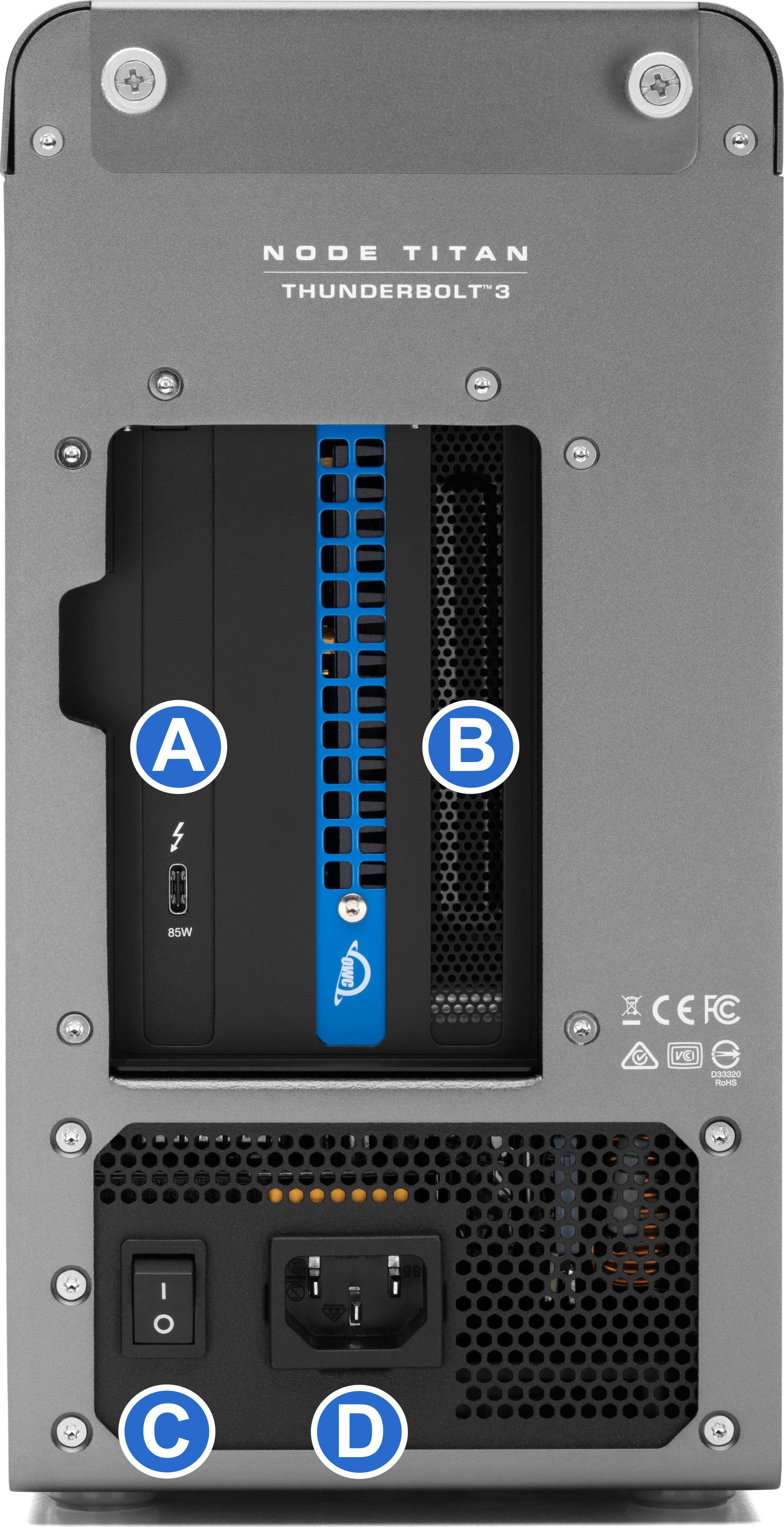A. Thunderbolt 3 Port (power delivery) - Connect to the host. Supports up to 85W of power to laptops that support charging from a 15 to 85W power source. This allows the laptop to charge without a power adapter.