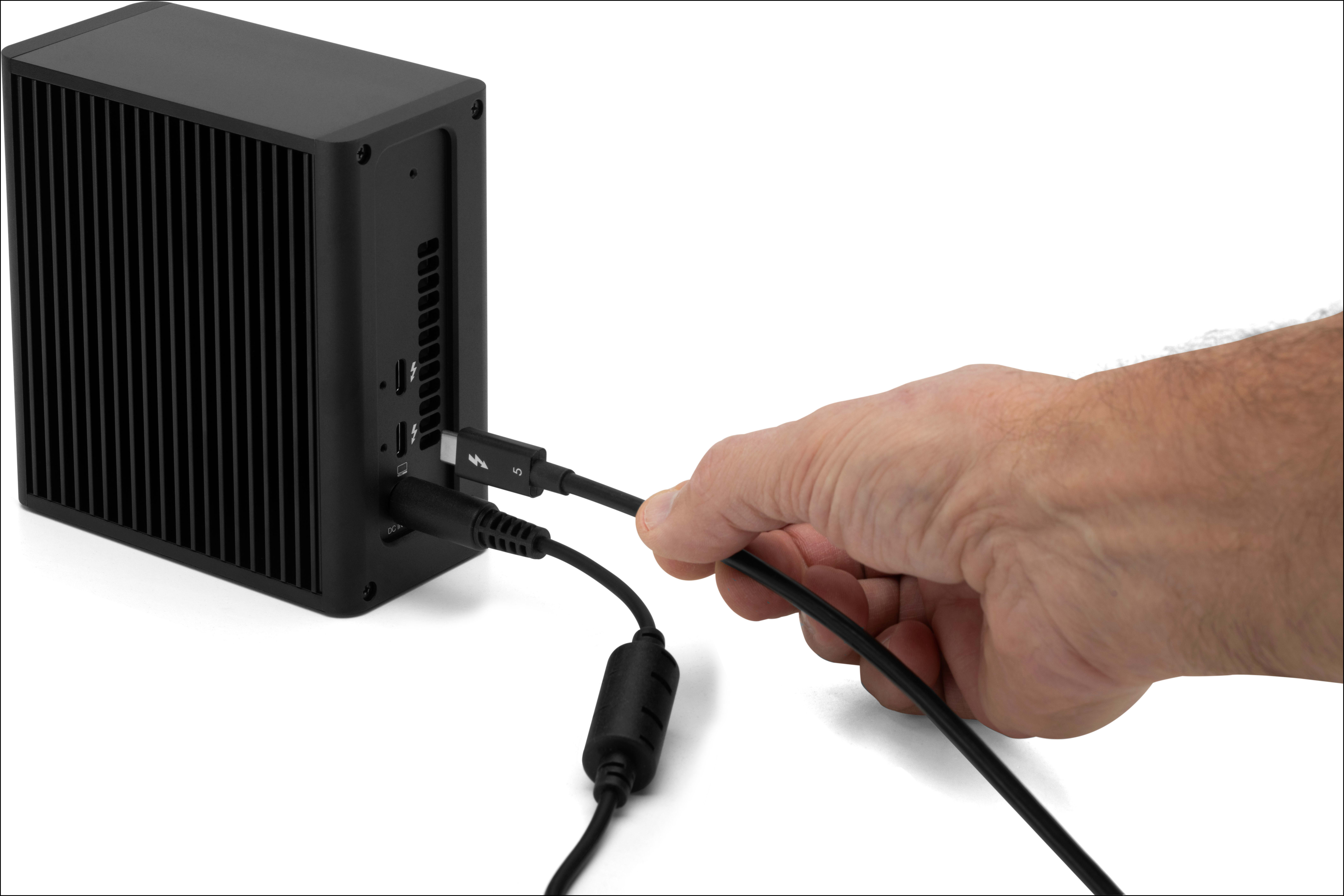 - Connect the OWC Thunderbolt 5 Express 4M2 Ultra and host system with a different Thunderbolt 5 cable.