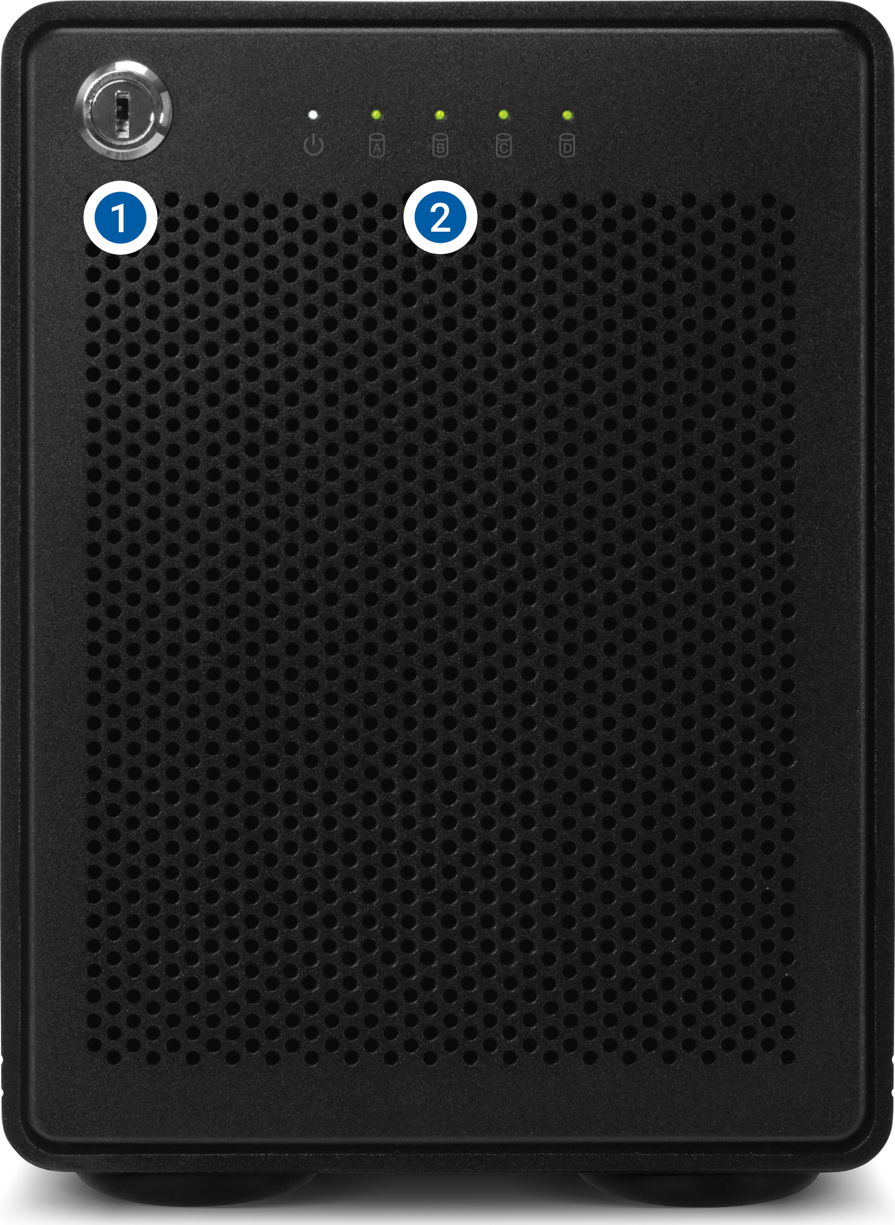 - Security Faceplate Lock – Use the included keys to lock or unlock the faceplate for access to the drive bays.