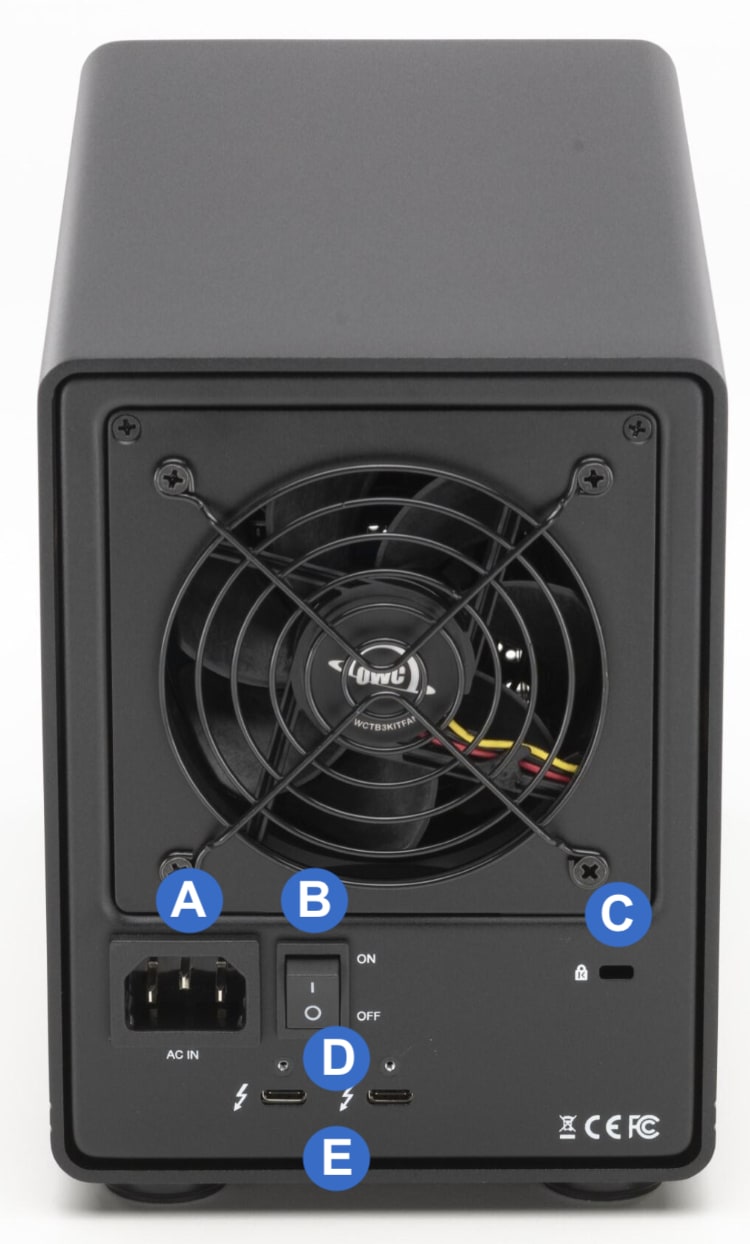 D. (2) OWC ClingOn-ready cable stabilizer mount – Affix ClingOn to help prevent accidental cable disconnections (sold separately)