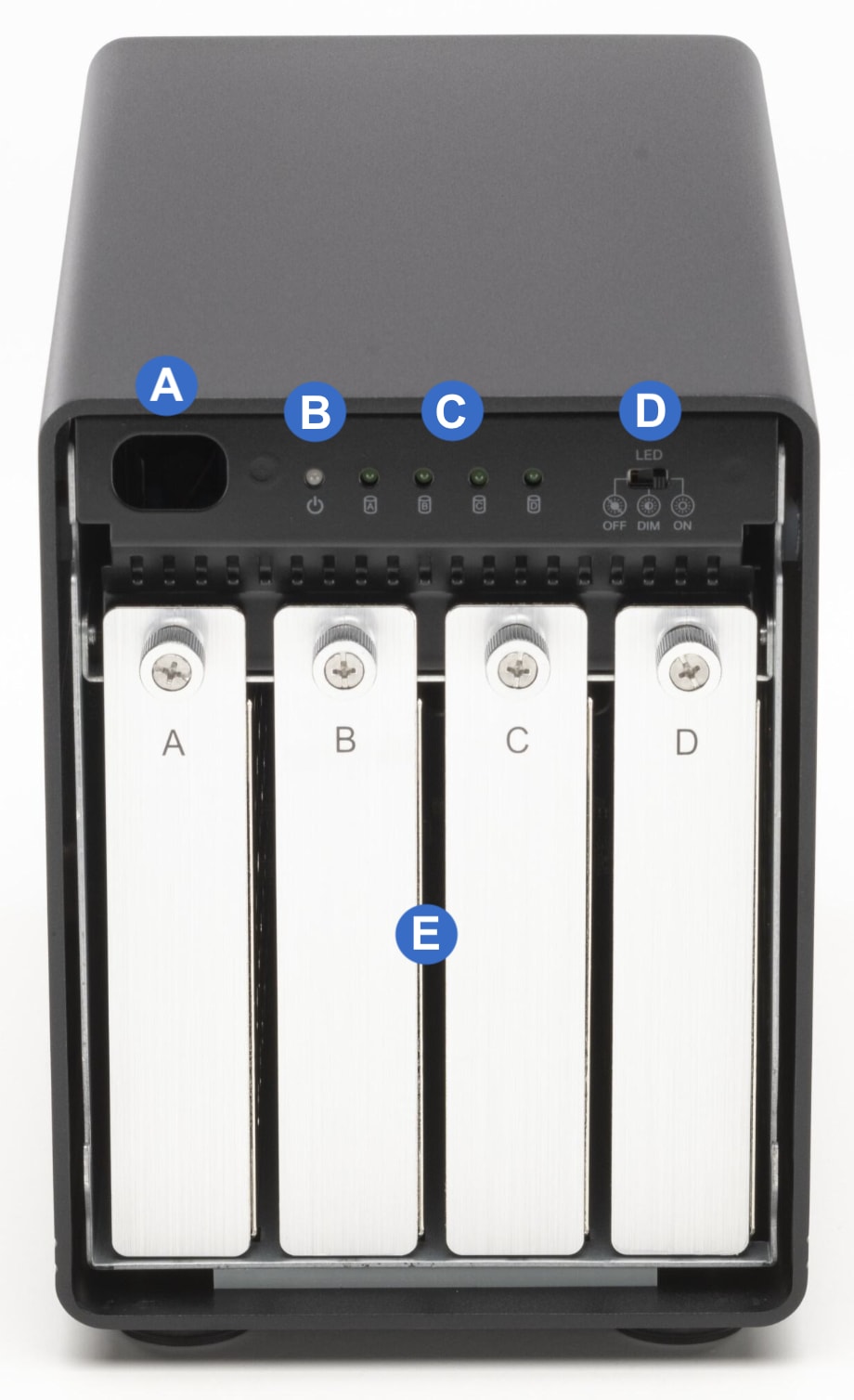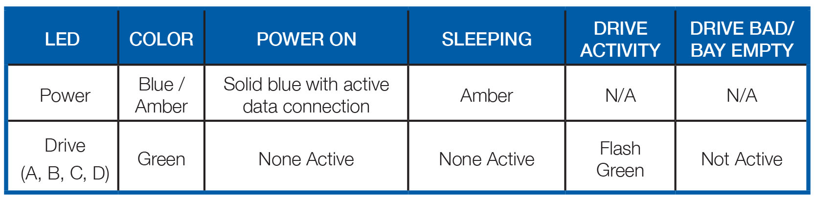 C. Drive Status LEDs - Drive Mounted = Solid Green / Drive Activity = Flashing Green