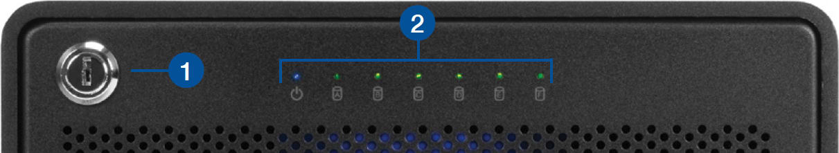 - Security Faceplate Lock – Use the included keys to lock or unlock the faceplate for access to the drive bays.