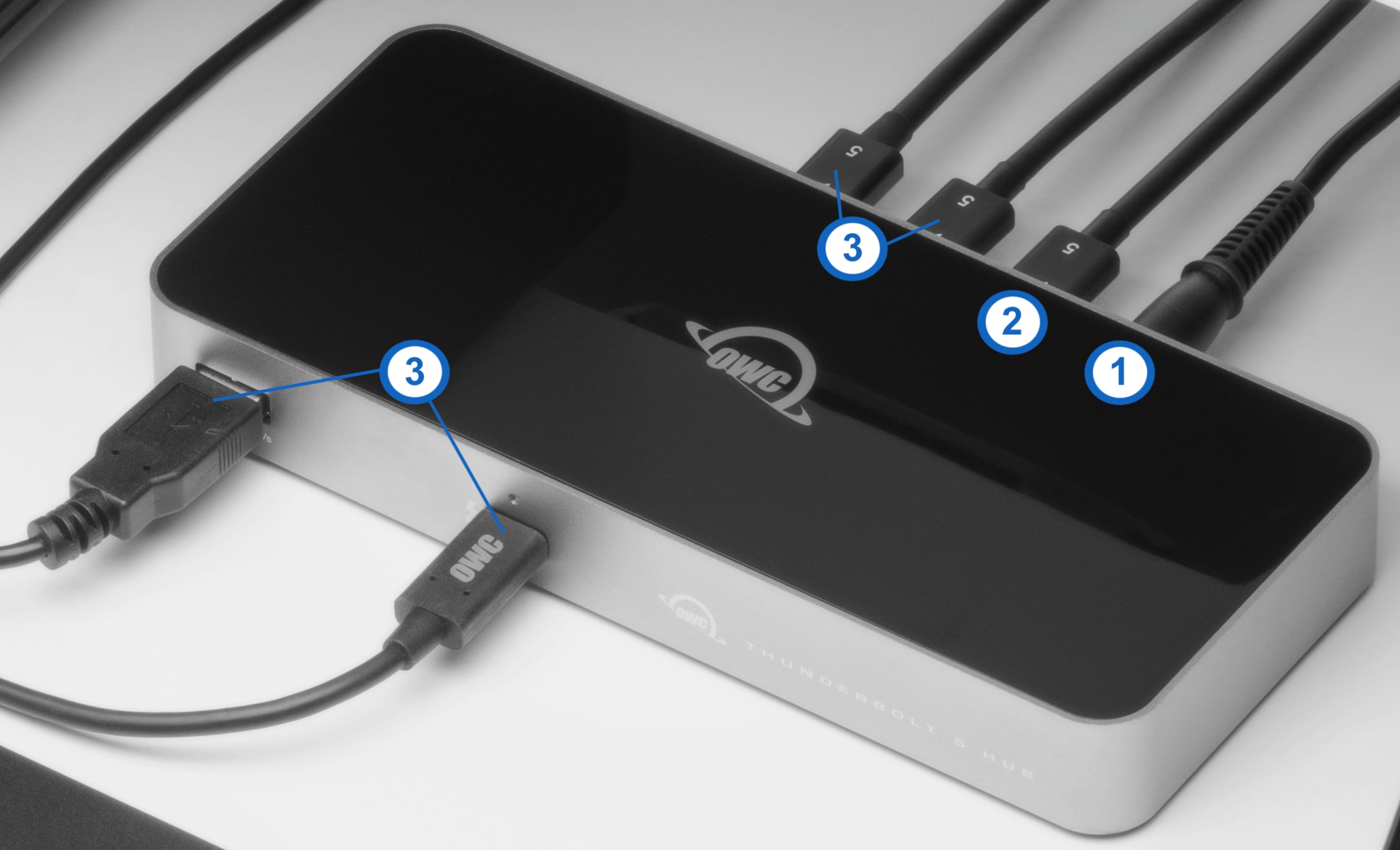 - Begin by verifying that the power cable and brick connections are all secure. Then verify that the Thunderbolt cable is connected to the OWC ThunderboltTM 5 Hub. Next, verify the other end of the Thunderbolt cable is properly plugged into a system. If issues persists, try connecting a different Thunderbolt cable and see if the OWC Thunderbolt 5 Hub works properly. Connecting to a different system is also an option to verify the issue.