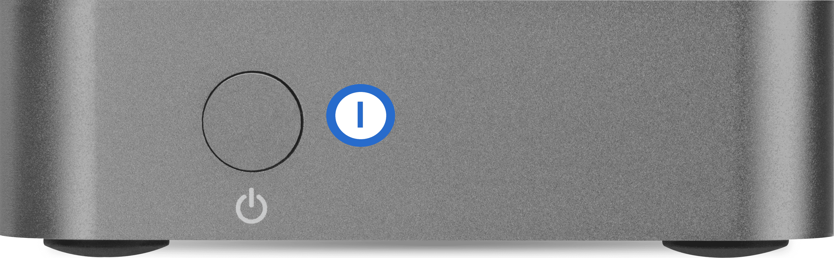 I. Power Button - The OWC Thunderbolt 5 Hub will automatically turn on when the power is connected. Press the power button to turn off and on the OWC Thunderbolt 5 Hub after connecting the power adapter.