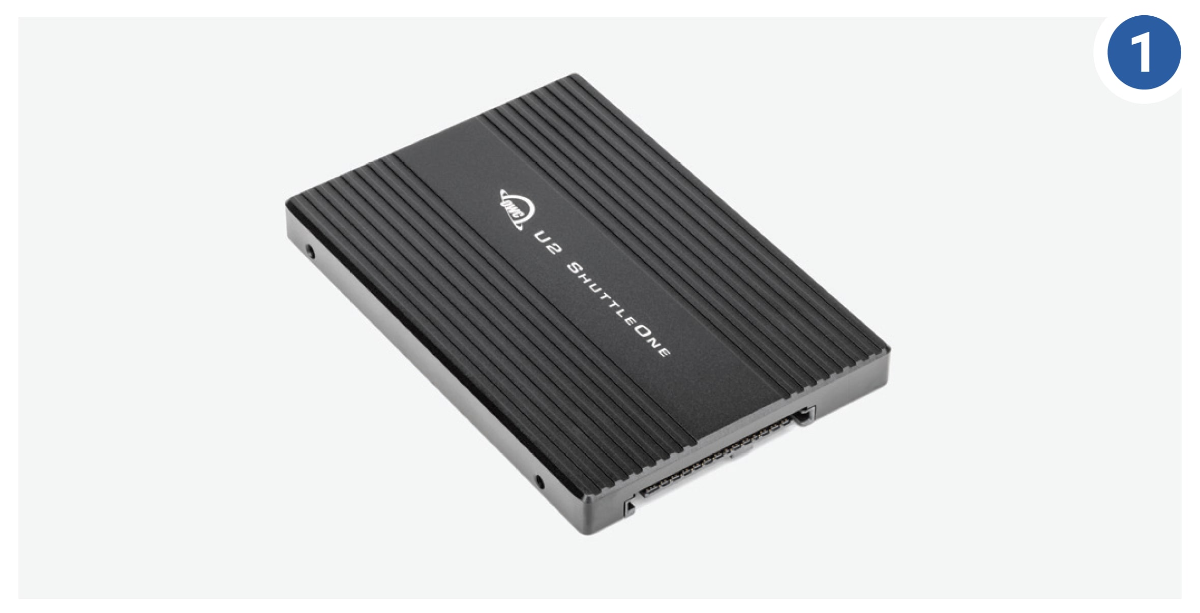 1. Install the OWC U2 ShuttleOne into an enclosure or system supporting 2.5-inch U.2 (SFF-8639) drive form-factor.